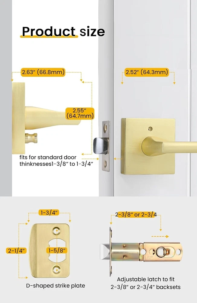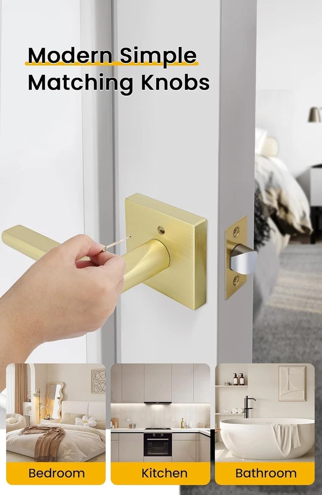 Durable Brushed Gold Door Handles with Push Button Lock - Interior 3 Pack ‹ › ‹ › ‹ › ‹ › ‹ › ‹ › ‹ › ‹ › ‹ › Durable Brushed Gold Door Handles with Push Button Lock - Interior 3 Pack Transform Your Space with Elegance Matching Interior Privacy Door Handles: Enhance your home’s aesthetic with these stunning brushed gold door handles. Designed to provide both beauty and privacy, these modern lever handles seamlessly complement your interior decor, adding a touch of sophistication. Adjustable and Versatile Reversible design accommodates door sets of 2 3/8" or 2 3/4" and doors from 1 3/8" to 1 3/4" thick. Swivel functionality allows for easy installation on either side of the door. Note: Please measure your door thickness and base before purchasing to ensure perfect fit. Effortless Operation and Installation Easy to operate with a simple push button lock that can be locked from the inside and unlocked externally with a pin, ensuring peace of mind. Quick installation; all you need is a screwdriver to fit the pre-drilled holes directly. Comprehensive Packing List Includes 6 single door handles, 3 strike plates, 3 latches, installation guide, and necessary screws. Key not included ; designed for privacy without traditional locking mechanisms. Exceptional After-Sales Service Your satisfaction is our priority. Should you encounter any issues during purchase or use, our dedicated service team is here to assist you promptly, ensuring the best solutions are offered. Why Choose Our Brushed Gold Door Handles? With over a decade of expertise in the door hardware industry, we pride ourselves on professional technology and exceptional service. Elevate your space with our exquisite brushed gold door handles – the perfect blend of style, security, and ease of use. Shipping Free & Fast Shipping - We offer free shipping to most of the USA with a normal delivery time of 3-7 days. However, due to the current situation, additional delivery time (up to 3 weeks) may be required for some items. Alternative Carriers - We may use alternative carriers (e.g. USPS, FedEx, UPS, etc.) to ensure your package arrives safely and on time. Due to the use of multiple carriers, we are unable to provide a tracking number automatically. Handling Time - Orders are processed and shipped within 1-2 business days of receiving cleared payment. Shipping Restrictions - Shipping to Alaska, Hawaii, Puerto Rico, Guam, and other US territories may incur shipping charges or delivery restrictions. Please contact us before ordering, or your order can be refunded/cancelled. State Restrictions - There may be restrictions based on your state of purchase. For example, certain items may not be shipped to California due to state regulations. Contact for Tracking Updates - If you require tracking updates or have any concerns about the delivery of your order, please feel free to contact us, and we will be happy to assist you. Return Please see our eBay Return Policy. Thank you. Payment We accept all major credit cards, PayPal, and Apple Pay for your convenience. Your payment information is secure and encrypted to ensure a safe and seamless transaction. Please complete your payment within 3 days of purchase to avoid any delays in shipping. Feedback Your feedback is extremely important to us. We strive to provide the best products and customer service possible. If you are satisfied with your purchase, please take a moment to leave us a positive review. If you have any concerns or issues with your order, please contact us before leaving negative feedback. We are committed to resolving any problems and ensuring your satisfaction. Contact Us If you have any questions or concerns, please feel free to reach out to our customer support team. You can contact us through the eBay messaging system. We are available Monday to Friday, 9:00 am to 5:00 pm EST, and we will do our best to respond to your inquiry within 24 hours. Thank you for supporting our small family business! UPC: Not Set Model: Not Set Unit Quantity: 3 Material: Brass,Zinc Suitable For: Interior/Room Door,Bedroom Door Features: Adjustable Backset,Easy to Install,Keyless,Privacy Lock Items Included: Hardware,Instructions Brand: Unbranded Type: Door Handle Color: Gold Finish: Brushed Item Height: Not Set Item Width: Not Set Item Length: Not Set Knob Diameter: 1 in MPN: Not Set Style: Modern Number in Pack: 3 Shape: Cylindrical Country/Region of Manufacture: Not Set Door Handing: Universal/Reversible Item Depth: 1 in Manufacturer Warranty: Not Set Item Weight: 6.63 lb Unit Type: lb Fixings Supplied: Not Set