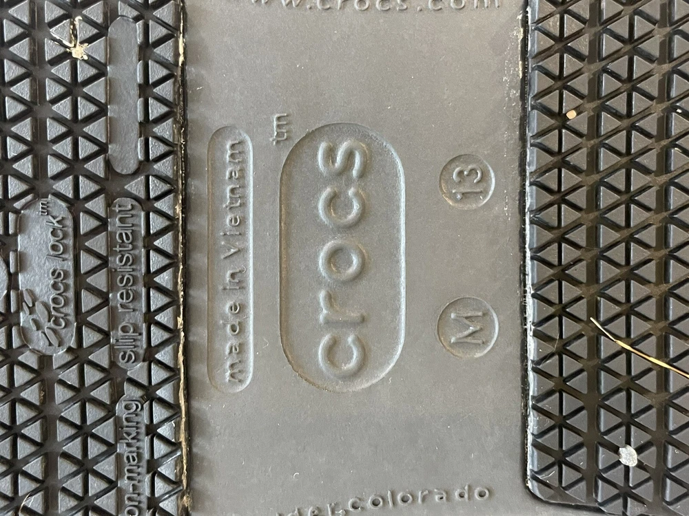 Elevate your casual look with these stylish Crocs Bistro slip-on clogs. Perfect for any occasion, these shoes feature a solid pattern and slip-on closure for easy wear. The black rubber upper material is accented with a non-slip feature, making them perfect for any surface. These clogs have a flat heel height of under 1 inch and a standard shoe width. The synthetic lining and insole material ensure comfort, while the rubber outsole provides durability. These Crocs Bistro slip-on clogs are a must-have addition to any wardrobe. From a smoke-free home.