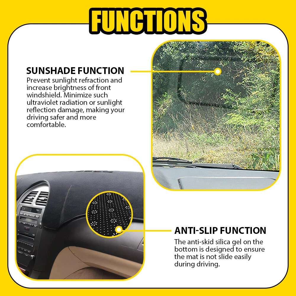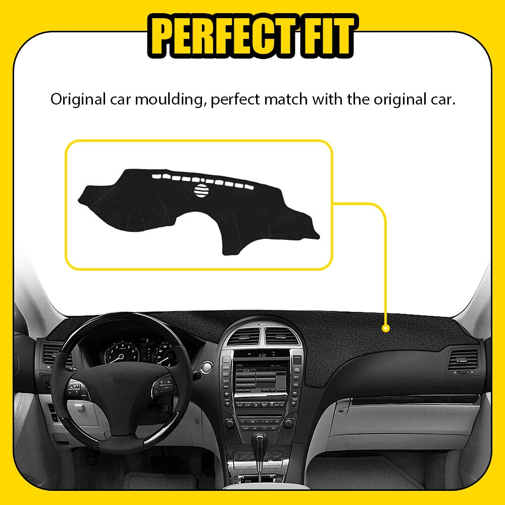 Fit for: 2007-2011 Lexus ES350 Specification: Product material: Polyester + anti-skid silica gel Product color: black Features: *Sunshade function: Prevent sunlight refraction and increase brightness of front windshield. Minimize such ultraviolet radiation or sunlight reflection damage, making your driving safer and more comfortable. *Anti-slip function: The anti-skid silica gel on the bottom is designed to ensure the mat is not slide easily during driving. *Great protection: Protecting the Dashboard surface from scratches, cracks and warping. *Superior material: Durable Dashboard Pad Dash Cover Mat Fits For 2007-2011 Lexus ES350 Black M Fit for: 2007-2011 Lexus ES350 Specification: Product material: Polyester + anti-skid silica gel Product color: black Features: *Sunshade function: Prevent sunlight refraction and increase brightness of front windshield. Minimize such ultraviolet radiation or sunlight reflection damage, making your driving safer and more comfortable. *Anti-slip function: The anti-skid silica gel on the bottom is designed to ensure the mat is not slide easily during driving. *Great protection: Protecting the Dashboard surface from scratches, cracks and warping. *Superior material: Polyester material is used on mat surface which is quite durable ,elastic and without deformation and pilling. *Perfect fit: With its well-cut shape, it will line up with your car in all the right spots. *High qulity: Durable, colorfast, non-shrinking needle-punch carpet *Easy installation Simple installation with direct replacement and convenient disassembly,other modifications are not required. *In Winter, warm the dashboard *In Summer, block UV rays from heating-up,cool the car, prevent high temperature *Environment-friendly materials, no bad smells, anti-slip. *Simple installation: 1. Clean the dashboard. 2. Place the mat on top of it. 3. Done. Package Include: Dashboard Cover Mat *1 ABOUT US Durable Dashboard Pad Dash Cover Mat Fits For 2007-2011 Lexus ES350 Black M Fit for: 2007-2011 Lexus ES350 Specification: Product material: Polyester + anti-skid silica gel Product color: black Features: *Sunshade function: Prevent sunlight refraction and increase brightness of front windshield. Minimize such ultraviolet radiation or sunlight reflection damage, making your driving safer and more comfortable. *Anti-slip function: The anti-skid silica gel on the bottom is designed to ensure the mat is not slide easily during driving. *Great protection: Protecting the Dashboard surface from scratches, cracks and warping. *Superior material: Polyester material is used on mat surface which is quite durable ,elastic and without deformation and pilling. *Perfect fit: With its well-cut shape, it will line up with your car in all the right spots. *High qulity: Durable, colorfast, non-shrinking needle-punch carpet *Easy installation Simple installation with direct replacement and convenient disassembly,other modifications are not required. *In Winter, warm the dashboard *In Summer, block UV rays from heating-up,cool the car, prevent high temperature *Environment-friendly materials, no bad smells, anti-slip. *Simple installation: 1. Clean the dashboard. 2. Place the mat on top of it. 3. Done. Package Include: Dashboard Cover Mat *1 FAQ Shipping Returns Contact Us Payment Why swith to LED? LEDs not only give your vehicle a clean, modern look but, with proper use, will outlast any halogen bulb and HID bulb! Low energy draw, high lumen output, and instant on/off LED technology out shines stock bulbs in every way. Which bulbs are used in my vehicle? Check Sylvania automotive lamp replacemnt guide , you can select the year, make, and model of your vehicle, then select the application you want to replace or upgrade from stock. What does CAN Bus mean? CAN Bus means Controller Area Network Bus. This system monitors your vehicle and reports operating conditions. CAN Bus systems are commonly found in European vehicles such as BMW, Audi, Mercedes, Volkswagen, Porsche, and in many American vehicles. While most late model American vehicles have CAN Bus systems, it is always good to check with your vehicle dealer to see which system your vehicle has before purchasing electrical products. When do you need Warning Canceller? Some vehicles with cmplex internal computers(such as Audi,BMW,Jaguar,Mercedes,etc.) might report on-dash errors or flickering on the headlights. The warning canceller fixes the dashboard warning and flickering effect. Bulb Out Dashboard Error: On some vehicles, the dashboard will report as if you have a headlight bulb missing or burnt. It does not affect the headlights functioning, but the light on-dash will be on. The warning canceller fixes the issue. Flickering Issue: This happens when your vehicle does not recognize the new headlights installed. When turning the headlights on, the vehicle's computer does not understand the signal back from the headlights hence thinking they are still off. This triggers the headlight flickering effect. The warning canceller solves this issue. LED Advantages: Very low and efficient energy consumption than halogen bulbs & HID Bulbs Compared with HID bulbs, LED bulbs Light up instantly, no warm up period Low voltage protection, high precision constant current driver chip Longer lifespan than HID and halogen bulbs Light can be controlled easily in color and intensity Easy to install a LED headlight conversion kit (1) We will ship your item(s) within 24 hours. (2) We ship this item to US only via USPS first class mail. It usually takes 3-6 working days to deliver. How Long Will It Take to Receive My Refund? If you have emailed us for a refund ,once we have approved it ,after 60 days your money will be refunded. The estimated time for the refund to appear in your account is based on the payment method you use. Paypal is the only supported in NIGHTEYE Store. Please notify us within 30 days after you've received your purchased item. All return requests must be submitted through yo