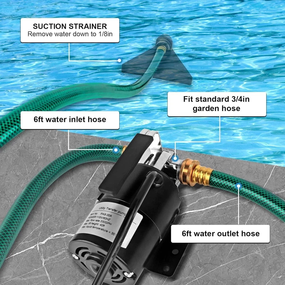 Durable Electric Utility Pump with 2 Water Hoses - Perfect for Pools & Aquariums ‹ › ‹ › ‹ › ‹ › ‹ › ‹ › ‹ › ‹ › Durable Electric Utility Pump with 2 Water Hoses Perfect for Pools & Aquariums Powerful Water Transfer Pump: 115V AC / 60 HZ, 1/10 HP, this portable transfer pump can transfer water up to 330 gallons per hour (5.5 gallons per minute). Easily lifts water over 42 ft , making it suitable for a variety of applications. Durability and Premium Quality: Constructed from heavy-duty metal , ensuring it outlasts plastic counterparts. Features a premium copper wire motor for ultimate performance and corrosion resistance through its zinc alloy pump volute. Designed for a longer service life. Safe & Convenient Operation: Equipped with a waterproof built-in switch for easy on/off operation. Comes with two 6.4 ft extra long power cords , enhancing safety and convenience. Self-priming and whispers quietly while running. Included 2* 6 FT Water Hoses: This utility transfer pump includes replaceable 6 ft suction hoses , meeting all your inlet and outlet needs. Includes a water suction strainer attachment to effectively remove water down to 1/8 inch of the surface. Wide Applications: Versatile in pumping clean water from pools, fish ponds, boats, and water heaters. Ideal for kitchens, bathrooms, camping adventures, and agricultural irrigation. Important Note: To ensure optimal operation, please add water to both the inlet and outlet before initial use to prevent running dry. For enhanced lubrication, adding edible oil is recommended. Allow more than 30 seconds for a smooth water flow. Why Choose Our Electric Utility Pump? Don’t compromise on quality when it comes to water transfer. Our Durable Electric Utility Pump is designed with superior materials and safety features, ensuring efficient performance while keeping your surroundings safe. With its impressive capacity and versatility, this pump is an invaluable addition for anyone needing reliable water transfer. Invest in reliability and efficiency - choose our utility pump for your aquatics and other clean water needs! Shipping Free & Fast Shipping - We offer free shipping to most of the USA with a normal delivery time of 3-7 days. However, due to the current situation, additional delivery time (up to 3 weeks) may be required for some items. Alternative Carriers - We may use alternative carriers (e.g. USPS, FedEx, UPS, etc.) to ensure your package arrives safely and on time. Due to the use of multiple carriers, we are unable to provide a tracking number automatically. Handling Time - Orders are processed and shipped within 1-2 business days of receiving cleared payment. Shipping Restrictions - Shipping to Alaska, Hawaii, Puerto Rico, Guam, and other US territories may incur shipping charges or delivery restrictions. Please contact us before ordering, or your order can be refunded/cancelled. State Restrictions - There may be restrictions based on your state of purchase. For example, certain items may not be shipped to California due to state regulations. Contact for Tracking Updates - If you require tracking updates or have any concerns about the delivery of your order, please feel free to contact us, and we will be happy to assist you. Return 30-Day Hassle-Free Returns - We want you to be completely satisfied with your purchase. If you are not, you can return the item within 30 days of receiving it for a full refund or exchange. Easy Return Process - To start a return, simply contact us and we will provide you with a prepaid return shipping label and detailed instructions. Restocking Fee - There are no restocking fees for returns. However, the buyer is responsible for return shipping costs if the return is not due to a seller's error. Refund Processing Time - Refunds will be processed within 5 business days of receiving the returned item in its original condition. Payment We accept all major credit cards, PayPal, and Apple Pay for your convenience. Your payment information is secure and encrypted to ensure a safe and seamless transaction. Please complete your payment within 3 days of purchase to avoid any delays in shipping. Feedback Your feedback is extremely important to us. We strive to provide the best products and customer service possible. If you are satisfied with your purchase, please take a moment to leave us a positive review. If you have any concerns or issues with your order, please contact us before leaving negative feedback. We are committed to resolving any problems and ensuring your satisfaction. Contact Us If you have any questions or concerns, please feel free to reach out to our customer support team. You can contact us through the eBay messaging system. We are available Monday to Friday, 9:00 am to 5:00 pm EST, and we will do our best to respond to your inquiry within 24 hours. Thank you for supporting our small family business! UPC: Not Set Model: Electric Water Transfer Pump Power: 115V Unit Quantity: 1/10 HP Features: Submersible,Portable,Easy to switch on/off,Waterproof built-in switch,Self-priming,Smooth running,Quiet operation,Corrosion resistance,Replaceable suction hoses Type: Utility Pump Brand: Unbranded Horse Power: 1/10 HP Maximum Working Pressure: n/a Item Width: Not Set Item Height: Not Set Item Length: Not Set Manufacturer Warranty: Not Set Installation: Universal Installation Item Weight: n/a Maximum Flow Rate: 5.5 gallons per minute Voltage: 115 volts Maximum Head Lift: 42 ft Country/Region of Manufacture: Not Set Maximum Working Temperature: n/a Minimum Working Temperature: n/a Item Diameter: n/a MPN: Not Set Unit Type: Unit