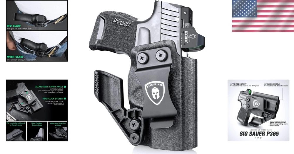Durable Kydex IWB Holster for Sig P365 Series with Adjustable Cant & Retention ‹ › ‹ › ‹ › ‹ › ‹ › ‹ › ‹ › ‹ › ‹ › Durable Kydex IWB Holster for Sig P365 Series Your perfect discreet carry solution, expertly designed for the Sig Sauer P365, P365X, P365XL, and P365 SAS pistols. Features: Compatibility: Specifically crafted for Sig Sauer P365 series (incompatible with lasers/lights). 1.75 Steel Clip: High carbon spring black oxide steel clip resists twisting, warping, or permanent bending, compatible with 1.5/1.75-inch belts. Optic Cut & Claw: Designed for various optics; claw feature eliminates printing for a more concealable carry (includes extra screws for no claw option). Compensator & Open Muzzle Cut: Accommodates various compensators; over-cut open muzzle allows for threaded barrel compatibility. Full Length Sweat Guard: Prevents sweat from contacting your pistol, ensuring longevity. Posi-Click Audible System: Features an audible "CLICK" sound to assure your firearm is firmly seated. 0.08 Inch US Kydex Construction: Rugged, durable, waterproof, washable, and lightweight for daily concealed carry. Hand Polished Edge: Ensured smooth edges to prevent scratches and wear on your firearm. Adjustable Cant & Retention: Carry angle adjustable from -5 to +20 degrees, with customizable retention tightness. Lifetime Warranty: Backed by a lifetime warranty; 24/7 customer service for any inquiries or concerns. Benefits: Unmatched durability and weather resistance ensure long-lasting performance. Comfortable carry that does not sacrifice accessibility or performance. Customizable features allow tailored fit for every individual's carry preference. Excellent craftsmanship with a focus on safety, ensuring total peace of mind. Why Choose Our Kydex IWB Holster? Elevate your concealed carry experience with our expertly designed Kydex IWB Holster. Engineered specifically for the Sig P365 series, it combines practicality with superior craftsmanship to cater to your safety and comfort needs. The adjustable cant and retention systems enable a personalized fit, while the premium Kydex material guarantees flexibility without compromising on durability. Don't settle for anything less than confidence—upgrade to our durable Kydex IWB holster today and begin carrying with assurance! Shipping Free & Fast Shipping - We offer free shipping to most of the USA with a normal delivery time of 3-7 days. However, due to the current situation, additional delivery time (up to 3 weeks) may be required for some items. Alternative Carriers - We may use alternative carriers (e.g. USPS, FedEx, UPS, etc.) to ensure your package arrives safely and on time. Due to the use of multiple carriers, we are unable to provide a tracking number automatically. Handling Time - Orders are processed and shipped within 1-2 business days of receiving cleared payment. Shipping Restrictions - Shipping to Alaska, Hawaii, Puerto Rico, Guam, and other US territories may incur shipping charges or delivery restrictions. Please contact us before ordering, or your order can be refunded/cancelled. State Restrictions - There may be restrictions based on your state of purchase. For example, certain items may not be shipped to California due to state regulations. Contact for Tracking Updates - If you require tracking updates or have any concerns about the delivery of your order, please feel free to contact us, and we will be happy to assist you. Return 30-Day Hassle-Free Returns - We want you to be completely satisfied with your purchase. If you are not, you can return the item within 30 days of receiving it for a full refund or exchange. Easy Return Process - To start a return, simply contact us and we will provide you with a prepaid return shipping label and detailed instructions. Restocking Fee - There are no restocking fees for returns. However, the buyer is responsible for return shipping costs if the return is not due to a seller's error. Refund Processing Time - Refunds will be processed within 5 business days of receiving the returned item in its original condition. Payment We accept all major credit cards, PayPal, and Apple Pay for your convenience. Your payment information is secure and encrypted to ensure a safe and seamless transaction. Please complete your payment within 3 days of purchase to avoid any delays in shipping. Feedback Your feedback is extremely important to us. We strive to provide the best products and customer service possible. If you are satisfied with your purchase, please take a moment to leave us a positive review. If you have any concerns or issues with your order, please contact us before leaving negative feedback. We are committed to resolving any problems and ensuring your satisfaction. Contact Us If you have any questions or concerns, please feel free to reach out to our customer support team. You can contact us through the eBay messaging system. We are available Monday to Friday, 9:00 am to 5:00 pm EST, and we will do our best to respond to your inquiry within 24 hours. Buy it now and enjoy a pleasant shopping experience! UPC: Not Set Model: Not Set Item Height: Not Set Item Length: Not Set Item Weight: 3.52 ounces Item Width: Not Set Unit Quantity: 1 For Gun Make: A.J. Aubrey,AA Arms,Accuracy International,Accu-Tek,Action Arms,Agawam,Akdal,Allies,American Bulldog,American Derringer,American Eagle Outfitters,American Gun,American Regent,American Tactical Imports,AMT,Andrew Fyrberg,Anschütz,Anson & Deeley,Apache,Argentine,Arisaka,ArmaLite,Armamex,Arminius,SIG SAUER Material: Kydex Carry Location: Ankle,Appendix,Bedside/Desk,Belly Band,Belt (OWB),Bra,Chest,Drop-Leg,Fanny Pack,Handbag,Hip,Inside Waistband (IWB),MOLLE,Off-Body,Paddle,Pocket,Shoulder,Small of the Back,Thigh,Universal For Gun Type: Pistol,Revolver,Rifle,Shotgun Gauge/Caliber: 10 Gauge,12 Gauge,16 Gauge,20 Gauge,28 Gauge,5.56 x 45 mm NATO,5.7 x 28 mm,6.5 mm Creedmoor,7.5 x 55 mm Swiss,7.62 x 25 mm Tokarev,7.62 x 39 mm,7.62 
