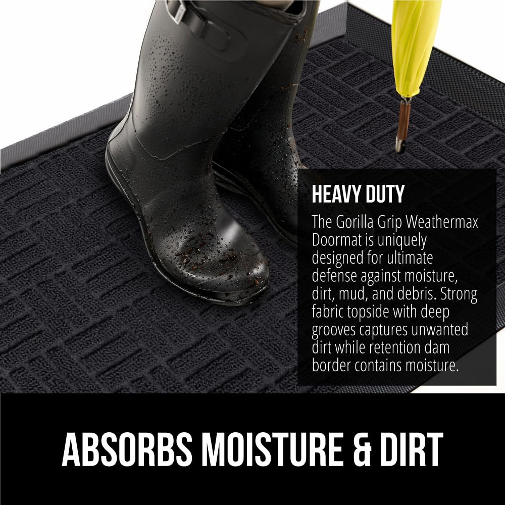 THE ORIGINAL WEATHERMAX ALL SEASON DOORMAT: 's Original WeatherMax doormat is built tough with a heavy duty, yet soft and flexible construction; deep grooves, beveled rubber border and retention dam help capture dirt, debris and moisture STAIN, WEATHER AND FADE RESISTANT: constructed to withstand all weather conditions from snow and rain to mud and sand; stain and fade resistant topside for long lasting use both inside and outside your home CAPTURES DIRT AND MOISTURE: durable woven topside and deep grooves capture dirt, mud and moisture; our doormat works to help keep unwanted debris from tracking into your home DURABLE NATURAL RUBBER BACKING: designed with a durable natural rubber backing; natural rubber provides higher tensile strength and a higher tear resistance DURABLE FOR HIGH TRAFFIC: perfect for daily use in high traffic areas; low profile design allows doors to easily open over the mat; .3 inch thick mat measures 29 x 17 inches