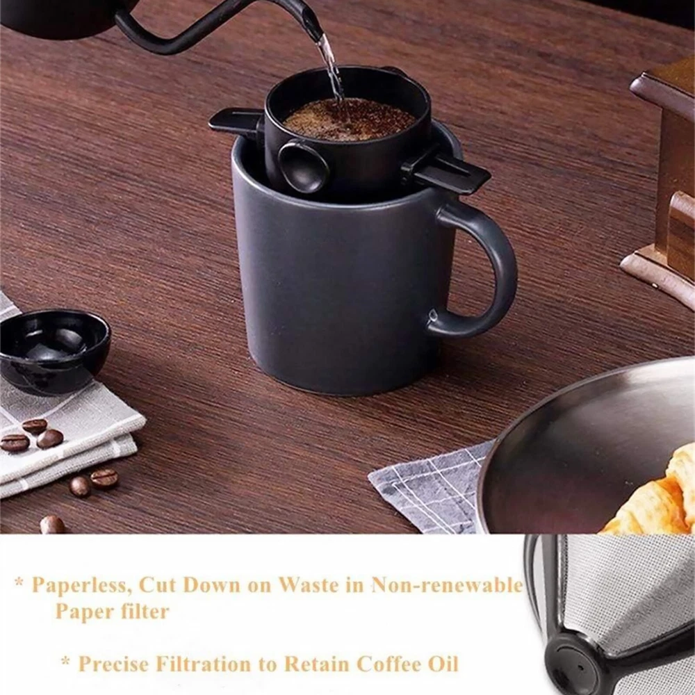 Love this reusable coffee filter! It’s sturdy, easy to clean, and saves money on paper filters. The stainless steel mesh brews smooth, full-flavored coffee without any weird tastes. Perfect size for my cup, folds flat for travel, and eco-friendly too. A must-have for coffee lovers!