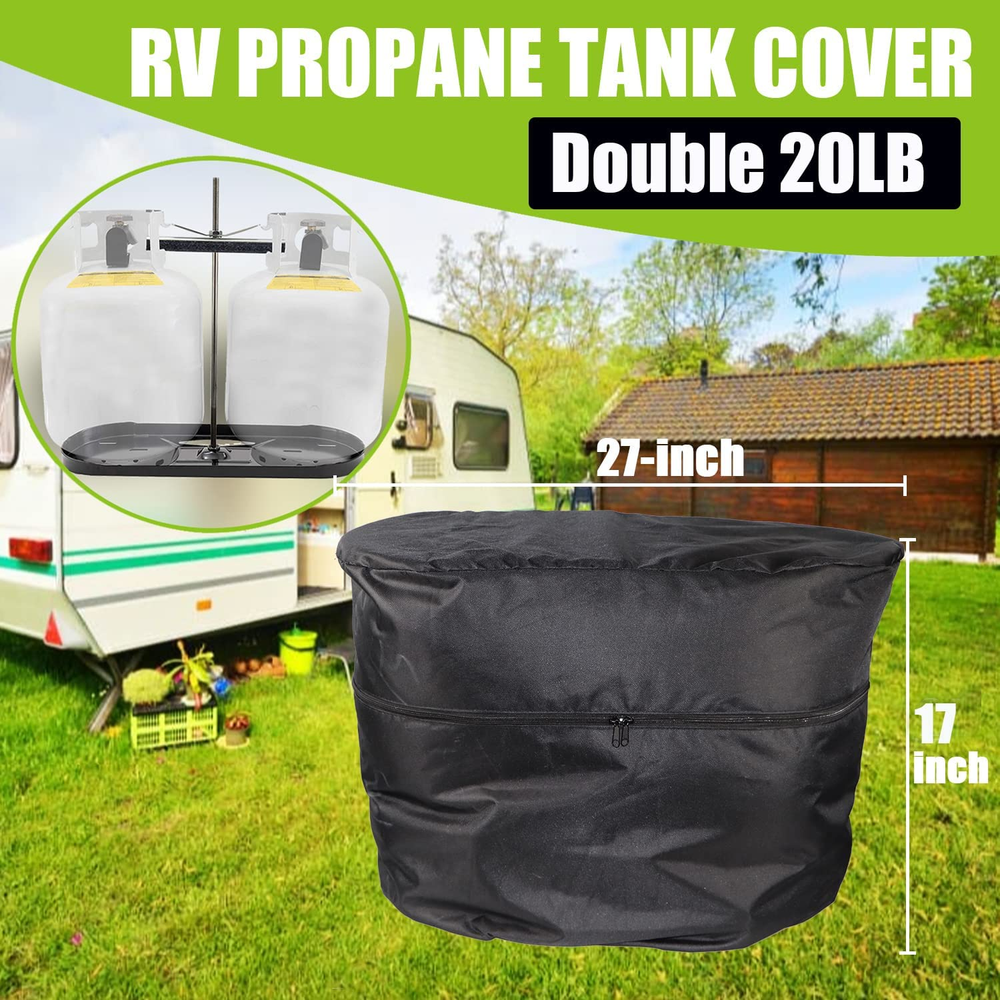 Store New Arrivals Add to Favorite View Feedback Contact RV Propane Tank Cover, Camper Propane Tank Cover Double 20Lb, for Travel Trailer Description Item model number BC0146 Closure Type Zipper Color Black Product Dimensions 27 x 12 x 17 inches Material Polyester Water Resistance Level Water Resistant Manufacturer Part Number BC0146 Item Weight 0.55 Kilograms Strap Type Drawstring Manufacturer BeadChica Brand BeadChica Size double 20lb 【 FITS TANK】Our Camper propane tank cover for dual 20/5 gallon tanks. Fits 2 side-by-side 20-pound (9kg) / 5-gallon (18.9 L) double cylinder canister. Dimension 27 x 12 x 17inch. 【ZIPPER DESIGN】zippered opening front which allows stress-free access to valves. Allows you to attach your tank tubes without cover removal. 【CUSTOM YOUR TANK】The RV tralier propane tank covers beautifies the look of the RV while enhancing to the protective facility for propane gas controls. 【WITH ELASTIC BAND 】 the bottom elastic band holds the cover in place to protect against elements. keeps the propane tank secure even on the windiest or rainiest days. 【HIGH QUALITY】Double 20lb propane tank cover for travel trailer is made of heavy duty 600D Oxford fabric. It nicely protects your tank against adverse climatic condition like UV,rain, snow, wind, dust, and dirt. Product Description ABOUT US We offer the best prices around on high quality products. Our E-store includes media such as books, movies, music and games while offering electronics, toys, sporting apparel, clothing, tools, general home, garden items and more. SHIPPING We are always working hard to ensure your package arrives as soon as possible. Please understand that some factors like weather, high postal traffic, and the performance of shipping companies are outside of our control. We offer free shipping to the lower 48 states and ship within 2 business days of payment, usually sooner. We do not accept P.O. Boxes. Please provide a physical address. RETURNS We offer a 30-Day Return Policy on items which you are not completely satisfied with. You have the option for a full-refund or an exchange of the item. No returns are available on items shipped outside of the USA. PAYMENT We accept PayPal. CONTACT US This page content is yet to come Please ad us to your favorite seller and visit again later Thank You CUSTOMER SATISFACTION We try our very best to make sure every customer is completely satisfied. If there's a problem, message us! We're happy to help.