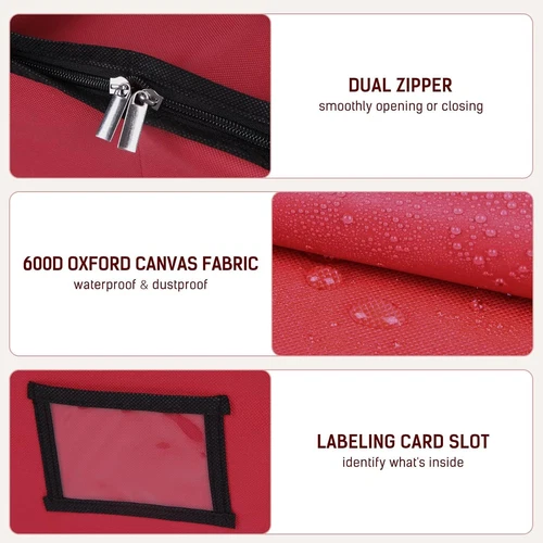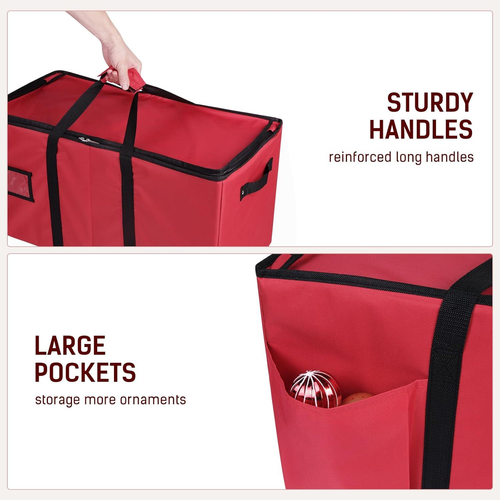 Lambada Christmas Ornament Storage Box, Durable Christmas Storage Container with Adjustable Dividers, Xmas Decorations Organizer – Fits 128 Holiday Ornaments 3 inch – Tear-Proof Fabric (Red) LuxeFusion Product Description Features 🎄【Extra Large Capacity】The ornament organizer storage box is spacious enough to accommodate up to 128 Christmas ornaments, each measuring 3 inches. The container consists of 6 boards and 48 dividers, providing you with the flexibility to store and organize holiday ornaments. Dimensions: 25.5" x 12.7" x 13.5". 🎅【Durable & Sturdy】This ornament organizer is constructed from 600D oxford nonwoven fabric, offering breathability and waterproof properties that provide superior protection for your Christmas decorations. The fabric is 100% tear-proof, ensuring that the storage box can be used for many years without breaking. ❄️【Thoughtful Features】This Christmas container features premium dual zipper closures with double stitching, providing exceptional durability. Additionally, there are two extra-large pockets for storing Irregular shape ornaments. Furthermore, a transparent card slot is designed for easy labeling. 🏵️【Easy to Transport and Storage】Sturdy handles on both sides of the Christmas ornament storage make it easy to transport from one room to another, while longer handles on the top of the box allow you to lift and move it with ease. It can also be folded to save space for convenient storage. 🎁【Beautiful Design】The dividers are made from sturdy cardboard, and the adjustable design enables you to store ornaments of various shapes. You can easily add or reduce dividers to accommodate the specific shape of ornaments you intend to store. Product Details Unit Count: 1.0 Count Manufacturer: Lambada Product Dimensions: 13.58 x 13.78 x 2.76 inches Item Weight: 6.32 pounds Color: Red Material: Polycotton Product Dimensions: 13.58"L x 13.78"W x 2.76"H Brand: Lambada Finish Type: Matte 🚚 Free Shipping All orders ship free and fast to your doorstep. 🔁 Easy Returns Satisfaction guaranteed. 30-day returns, no questions asked. 💬 24/7 Support Contact us anytime; we’re here to help, day or night. Brought to you by LuxeFusion – Quality you can trust.