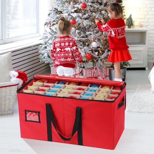 $ 16.3772-Compartment Ornament Storage Box with Trays for 4-Inch Decorations in Red