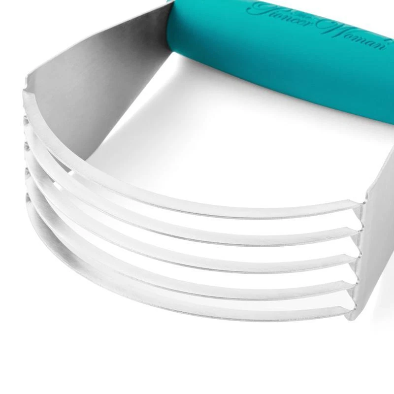 Meet your new baking companion—The Pioneer Woman Stainless-Steel Pastry Dough Cutter in Teal. This dough cutter is designed with a comfortable plastic handle that makes blending butter, margarine, and other ingredients into your pastry dough effortless. Its sturdy u-shaped blades are crafted from high-quality stainless steel, allowing you to cut through dough with ease and achieve the perfect texture for pie crusts, biscuits, and other baked goods. The stainless-steel construction ensures durability, making it a versatile tool for all your baking needs. After you're done baking, cleaning is a breeze—just pop it in the dishwasher, and it's ready for your next culinary adventure. Additionally, it's BPA-free, giving you peace of mind while you bake. This Pastry Cutter is compact and easy to store, yet robust enough to handle heavy-duty baking tasks. Experience the difference a high-quality dough cutter can make and elevate your baking with The Pioneer Woman Pastry Dough Cutter today! Meet Ree: Ree Drummond is a NY Times Best Selling Author, TV personality, social media phenom, and the woman behind the popular Pioneer Woman lifestyle blog that started it all. She's also a lover of butter, basset hounds, Ethel Merman, her hunky, cowboy husband Ladd, and their four kids. Her casual country style and delicious recipes have made her a go-to for all things cooking and entertaining. The Pioneer Woman Stainless-Steel Pastry Dough Cutter, Teal: Made of durable stainless steel and plastic handle Effortlessly blends butter, margarine, and other ingredients into pastry dough Five sturdy U-shaped blades provide ease in cutting through dough for perfect pie crusts, biscuits, and other baked goods Compact and easy to store Ergonomically designed handle for a secure and comfortable grip Dishwasher safe BPA free Measures: 5” L x 1” W x 5. 5” H Features: Ergonomic Handle Brand: The Pioneer Woman Color: Teal blue Manufacturer Part Number: PW55069605140AC Material: Stainless Steel Assembled Product Weight: 0. 3 lb Model: PW55069605140AC Assembled Product Dimensions (L x W x H): 1. 80 x 4. 60 x 5. 50 Inches