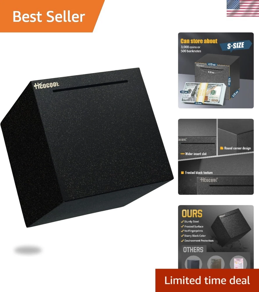 Durable Starry Black Savings Bank - Perfect for Coins and Bills, Ideal Gift ‹ › ‹ › ‹ › ‹ › ‹ › ‹ › ‹ › ‹ › ‹ › ‹ › ‹ › ‹ › Durable Starry Black Savings Bank Perfect for Coins and Bills, Ideal Gift Unique Starry Black Design Crafted with an electrostatic spraying process, offering a sophisticated frosted black finish with shimmering gold foil powder. Unlike typical stainless steel banks, our piggy bank resists light reflection and disguises fingerprints, exhibiting a stunning starry black hue when illuminated. The perfect novelty money bank, standing out as your first choice in 2025. Your Little Helper for Big Saving Projects Measuring 4.72 inches, made from high-quality, anti-corrosive stainless steel for ultimate durability. Sturdy enough to securely hold approximately 3000 coins or 500 bills at its full capacity. Saving for a Rainy Day This ONLY IN NO OUT design features 6 sealed sides and a single slot for deposits. Requires tools like a hammer or handsaw to open - a reminder that with this piggy bank, opening equals destruction. Encourages long-term saving plans - open only when your financial goal has been met or in emergencies. Educational Gift for All Ages Ideal for adults and a personal savings bank for children and teens, helping to instill saving habits and self-discipline. Perfect for gifting on holidays, birthdays, or special occasions, encouraging loved ones to fulfill their financial dreams. Value Service Included with your purchase are 4 round anti-slip mats, designed to stabilize your savings bank, reducing shaking and noise. Backed by our commitment to exceptional customer service and a Lifetime Warranty for peace of mind. Elevate your saving experience with this unique, stylish savings bank. Order your Durable Starry Black Savings Bank today and start your financial journey with elegance! Shipping Free & Fast Shipping - We offer free shipping to most of the USA with a normal delivery time of 3-7 days. However, due to the current situation, additional delivery time (up to 3 weeks) may be required for some items. Alternative Carriers - We may use alternative carriers (e.g. USPS, FedEx, UPS, etc.) to ensure your package arrives safely and on time. Due to the use of multiple carriers, we are unable to provide a tracking number automatically. Handling Time - Orders are processed and shipped within 1-2 business days of receiving cleared payment. Shipping Restrictions - Shipping to Alaska, Hawaii, Puerto Rico, Guam, and other US territories may incur shipping charges or delivery restrictions. Please contact us before ordering, or your order can be refunded/cancelled. State Restrictions - There may be restrictions based on your state of purchase. For example, certain items may not be shipped to California due to state regulations. Contact for Tracking Updates - If you require tracking updates or have any concerns about the delivery of your order, please feel free to contact us, and we will be happy to assist you. Return 30-Day Hassle-Free Returns - We want you to be completely satisfied with your purchase. If you are not, you can return the item within 30 days of receiving it for a full refund or exchange. Easy Return Process - To start a return, simply contact us and we will provide you with a prepaid return shipping label and detailed instructions. Restocking Fee - There are no restocking fees for returns. However, the buyer is responsible for return shipping costs if the return is not due to a seller's error. Refund Processing Time - Refunds will be processed within 5 business days of receiving the returned item in its original condition. Payment We accept all major credit cards, PayPal, and Apple Pay for your convenience. Your payment information is secure and encrypted to ensure a safe and seamless transaction. Please complete your payment within 3 days of purchase to avoid any delays in shipping. Feedback Your feedback is extremely important to us. We strive to provide the best products and customer service possible. If you are satisfied with your purchase, please take a moment to leave us a positive review. If you have any concerns or issues with your order, please contact us before leaving negative feedback. We are committed to resolving any problems and ensuring your satisfaction. Contact Us If you have any questions or concerns, please feel free to reach out to our customer support team. You can contact us through the eBay messaging system. We are available Monday to Friday, 9:00 am to 5:00 pm EST, and we will do our best to respond to your inquiry within 24 hours. Buy it now and enjoy a pleasant shopping experience! Material: Stainless Steel Brand: Unbranded Country/Region of Manufacture: Piggy Bank for Adults Original/Reproduction: Piggy Bank for Adults