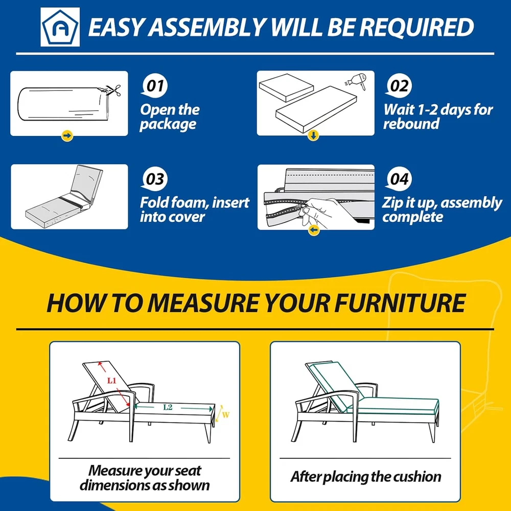 Store New Arrivals Add to Favorite View Feedback Contact Outdoor Chaise Lounge Cushions for Patio Furniture Lounge Chairs, Waterproof Fabric, 74 X 23 X 3 Inch, Turquoise Blue Description Unit Count 1.0 Count Number of Items 1 Color Turquoise Blue Pattern Plain Product Dimensions 74"L x 23"W Country of Origin China Shape Rectangular Item Weight 9.02 pounds Pillow Type Furniture Cushion Fill Material Foam Age Range (Description) Adult Size 1 Count-74 in L x 23 in W x 3 in T Special Feature Water-Resistant, Waterproof, Fade-Resistant, UV-Resistant Cover Material Polyester About Size: Seat: 46L×23W×3H inches, Backrest: 28L×23H×3T inches (dimensional tolerance: 1'' ). To get the right outdoor chaise lounge cushion, please measure the seat size of your outdoor furniture before ordering. Compressed and packed in a roll, the cushion foam inserts may come to you a bit bigger and thinner than their normal sizes after you unpack them. Please allow several days for them to rebound back or pluff them up faster by evenly moving a hair dryer around them for several minutes Waterproof and Removable Cover: Made of sturdy, breathable polyester fabric with a waterproof coating, the cushion cover is UV-protected and fade-resistant, providing you with a comfortable outdoor experience. The removable cover features a zipper for easy cleaning and replacement. The zippers are covered and invisible, so you don't need to worry about them affecting the appearance or functionality Upgraded Cushion Foam: The thicker powder-free high-resilience foam can quickly regain to its original shape after sitting for a long time and provide you with soft and comfortable using experience. This can not only effectively relieve the pressure on your body and enhance your comfort, but also make the chaise cushions more durable after long-term use Non-slip Ties and Piped Edge: The four non-slip ties can be fastened to your furniture to keep the outdoor cushion in place. Some seams are finished with piping, which reinforces the edges and makes the outdoor furniture cushion more stylish Wide Use & Some Tips : The outdoor lounge chair cushions can be used on your chaise lounges in various outside spaces like the pool, patio, balcony, deck, backyard and gazebo. Some tips: the foam inserts and the covers will be separately packed in bags and then put together in one box so please check carefully if they are all included in the box. Easy assembly will be required. If you need any help, please contact our customer service staff first Product Description AAAAAcessories cushions in different sizes and colors Add to Cart Add to Cart Add to Cart Add to Cart Add to Cart Add to Cart Add to Cart Customer Reviews 4.5 out of 5 stars 243 4.4 out of 5 stars 671 4.7 out of 5 stars 26 4.6 out of 5 stars 75 4.5 out of 5 stars 306 4.5 out of 5 stars 58 4.7 out of 5 stars 21 Price $84.99 $ 84 . 99 $114.99 $ 114 . 99 $128.99 $ 128 . 99 $118.99 $ 118 . 99 $49.99 $ 49 . 99 $49.99 $ 49 . 99 $44.99 $ 44 . 99 Size 72 x 21 x 3 24 x 24 x 5 + 24 x 19 24 x 24 x 5 + 24 x 19 x 4 25.5 x 25.5 x 5 + 25.5 x 13.5 19 x 19 x 3 20 x 20 x 3 + 20 x 24 x 3 42 x 18 x 3 Waterproof ✔ ✔ ✔ ✔ ✔ ✔ ✔ Fadeproof ✔ ✔ ✔ ✔ ✔ ✔ ✔ Ties 4 Ties 2 Ties 2 Ties 2 Removable Ties 2 Removable Ties 4 Ties 2 Ties Rolled edge ✔ ✔ ✔ ✔ ✘ ✘ ✔ Non-slip Bottom ✘ ✘ ✘ ✔ ✔ ✔ ✘ ABOUT US We offer the best prices around on high quality products. Our E-store includes media such as books, movies, music and games while offering electronics, toys, sporting apparel, clothing, tools, general home, garden items and more. SHIPPING We are always working hard to ensure your package arrives as soon as possible. Please understand that some factors like weather, high postal traffic, and the performance of shipping companies are outside of our control. We offer free shipping to the lower 48 states and ship within 2 business days of payment, usually sooner. We do not accept P.O. Boxes. Please provide a physical address. For shipping outside of the continental USA, we only use eBay's Global Shipping Program.The item is shipped to KY and then sent to the rest of the world. International customers are responsible for all duties and taxes. Continue to check out in order to calculate costs for shipping the item to your country. Messages regarding eBay's Global Shipping Program MUST be directed at eBay EXCLUSIVELY. RETURNS We offer a 30-Day Return Policy on items which you are not completely satisfied with. You have the option for a full-refund or an exchange of the item. No returns are available on items shipped outside of the USA. PAYMENT We accept PayPal. CONTACT US This page content is yet to come Please ad us to your favorite seller and visit again later Thank You CUSTOMER SATISFACTION We try our very best to make sure every customer is completely satisfied. If there's a problem, message us! We're happy to help. WE ACCEPT Copyright © 2021 AutoDS. | All Rights Reserved