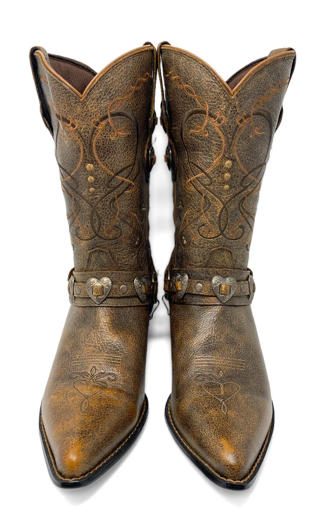 Up for purchase is this pair of Durango Crush Heartbreaker Harness Heart Concho Brown Leather Cowboy Boots RD4155 Women’s Size 10M. Boots are in overall very good pre-owned condition with light cosmetic wear. Images are part of the item description so please see all images for more details. If you have any questions please let us know. Thank you