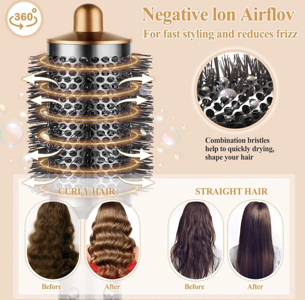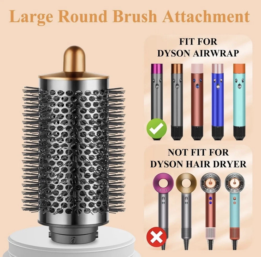 Brand YTCHYYSK Color Nickel/copper Plastic Power 1000 Air-driven power supply Special features Pendant ring Package contents: 1 large round bulking brush (nickel/copper) for Dyson Airwrap HS01 HS05. Not suitable for Dyson hair dryer Superior curly hair: the round brush attachment helps to achieve natural and elegant curls effortlessly. The teeth of the comb lift the roots while drying the hair, achieving curly hairstyles effortlessly Hair Volumizer: The large round volumizing brush is larger than the standard size, allowing you to dry your hair while sponge the roots, gives volume and styling your hair faster. Comb teeth increase volume, allowing faster hair drying Exceptional compatibility: specifically designed to be compatible with Dyson Airwrap, the product offers exceptional compatibility and easy and quick installation