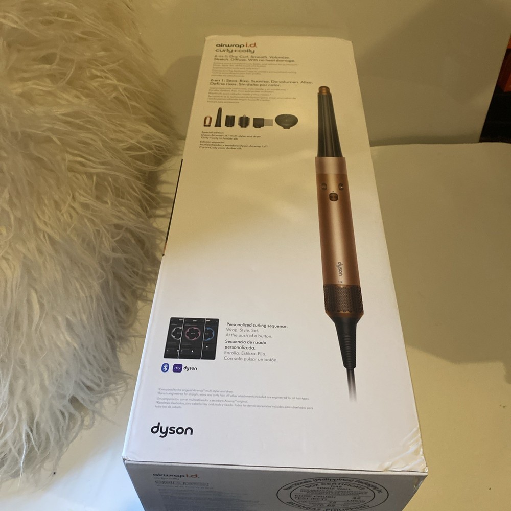 The Dyson Airwrap i.d Multi-Styler for curly+coily Amber Silk is a travel-sized electric styler designed for wavy hair. With a maximum temperature of 400 °F and ceramic and tourmaline heating plate material, this limited edition unit offers three temperature settings for customized styling. The sleek amber silk color and 1.25 inch barrel size make it a versatile and high-quality styling tool from the trusted brand Dyson.