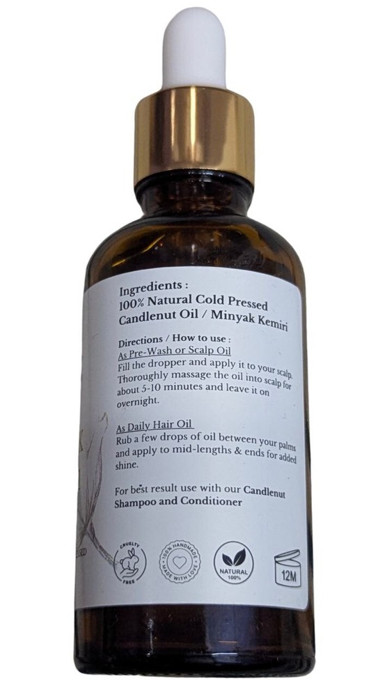 Candlenut oil (minyak kemiri) is commonly used in hair care products like shampoos and conditioners due to its numerous benefits. Here are some of the advantages of candlenut oil in shampoo and conditioner: Strengthens Hair : Candlenut oil is rich in essential fatty acids, which help strengthen hair and reduce damage. It helps repair hair structure that has been damaged by dyeing, heat styling tools, or environmental factors. Promotes Hair Growth : The nutrients in candlenut oil can stimulate hair follicles, encouraging healthier hair growth and helping to reduce hair loss issues. Moisturizes Hair : Candlenut oil acts as a good moisturizer, helping to retain moisture in the hair and prevent it from becoming dry and brittle. Treats Dandruff : Candlenut oil has antimicrobial properties that can help reduce dandruff and itching on the scalp. Enhances Hair Shine : Using candlenut oil in shampoo or conditioner can give the hair a healthy shine, making it look more glossy and radiant. Softens Hair : Candlenut oil can make hair softer and easier to manage, reducing problems with tangling and difficult-to-manage hair. With consistent use, shampoos and conditioners containing candlenut oil can provide significant benefits for hair health and beauty.