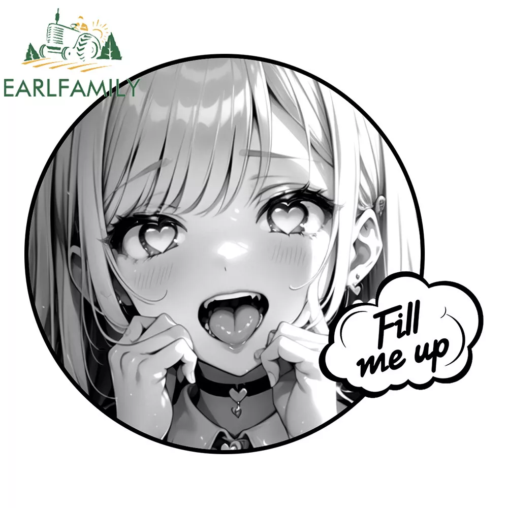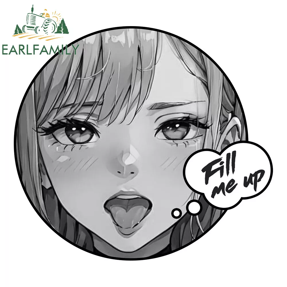 EARLFAMILY 5.1" Ahegao Anime Girl Fill Me Up Waifu Car Decals Tank Cap Stickers