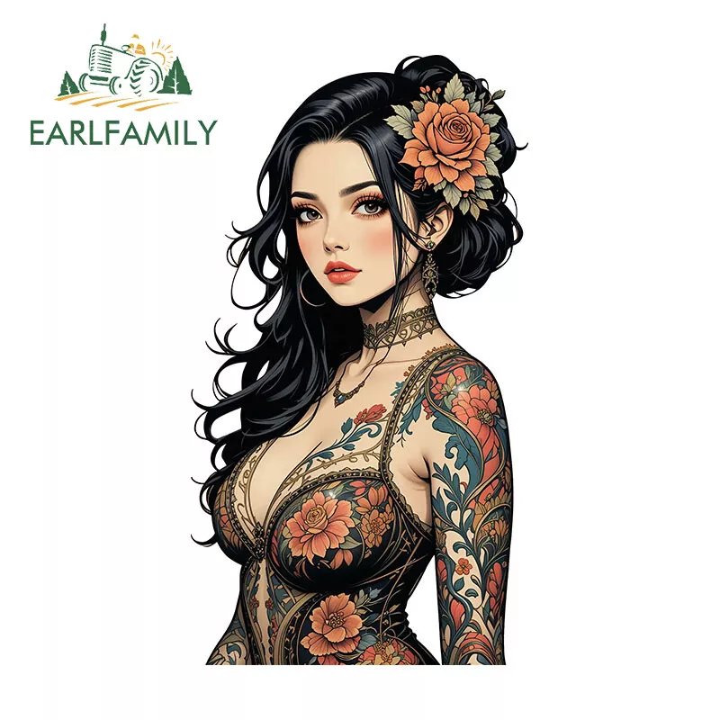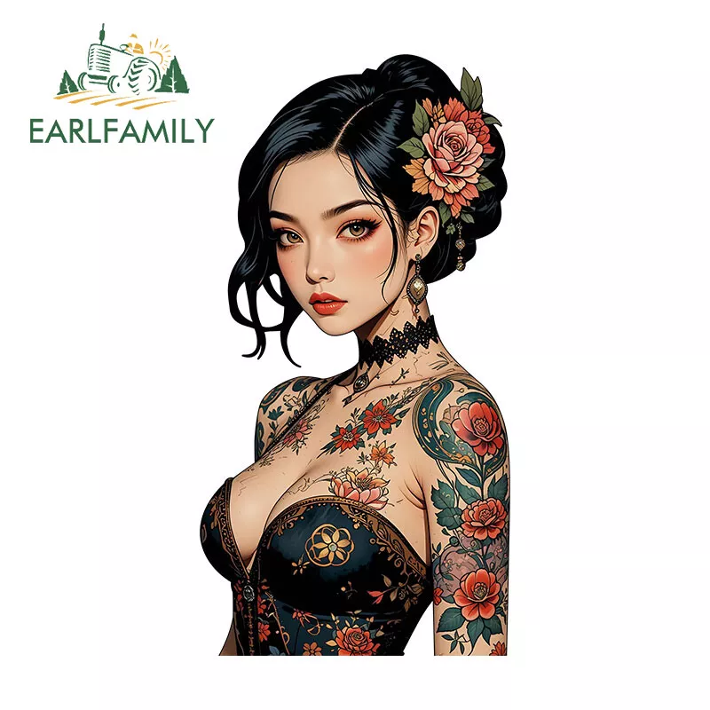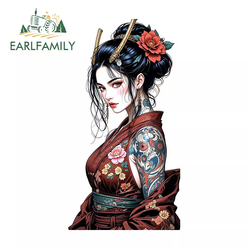 EARLFAMILY 5.1" Japanese Geisha Tattoo Girl Anime Car Decal Bumper Vinyl Sticker