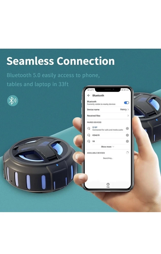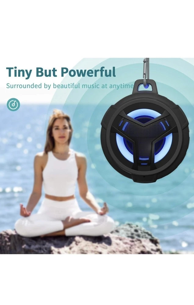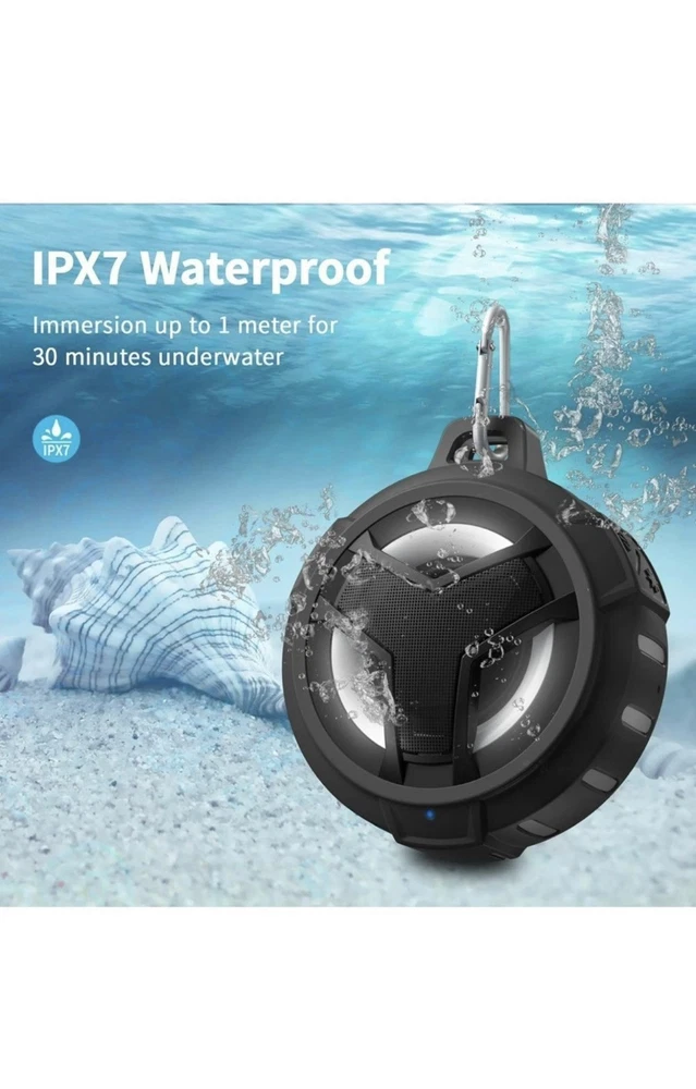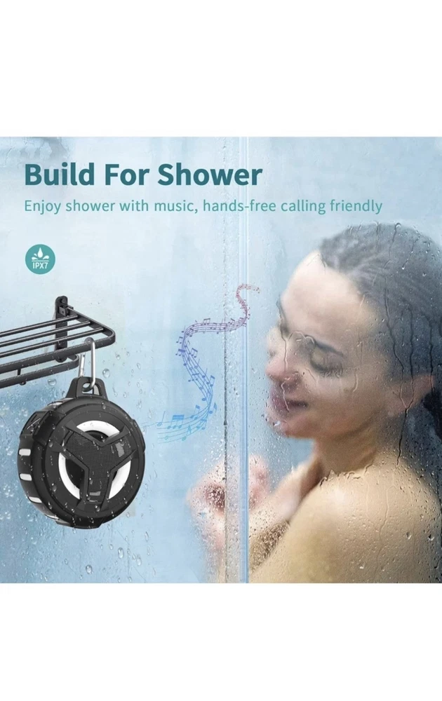 EBODA Bluetooth Shower Speaker, Portable Bluetooth Speakers, IP67 Waterproof Wireless Speaker with LED Light, Floating, 2000mAh, True Wireless Stereo for Kayak, Beach, Gifts for unisex -Black Brand EBODA Speaker Maximum Output Power 5 Watts Frequency Response 50 Hz Connectivity Technology Bluetooth Audio Output Mode Stereo Mounting Type Handlebar Mount, Freestanding IP67 WATERPROOF SHOWER SPEAKER & FLOATING Waterproof Shower speaker is thoroughly resistant to water, dust and sand. You can get it wet, muddy, covered in snow, and then hand wash it when you go in. The water vapor in bathroom will never interfere with the sound quality of the waterproof speaker. its IP67 protection even withstands complete submersion in up to one meter of water for up to 30 minutes, and even float after taking a plunge. ( When the speaker is submerged or the speaker area is waterlogged, there will be resistance when the speaker is pronounced and the volume may be reduced.