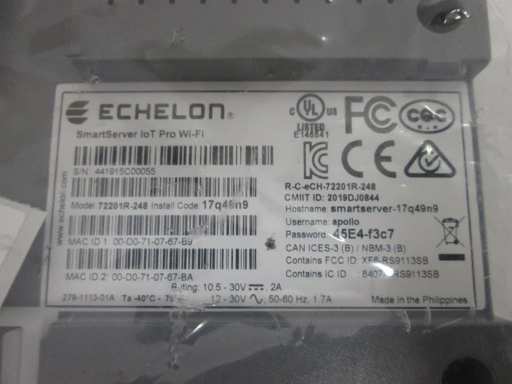 ECHELON 72201R-248 SMARTSERVER IOT PRO WI-FI MODULE NEW 136087 This unit is NEW, in unopened, original packaging. Please, carefully review all pictures before making a purchase. Features Details 30-days Money Back Guarantee. We provide free return label We are committed to making sure that you leave satisfied with this transaction. If you're unhappy with the product for any reason, you may return it back for a refund or a replacement/exchange within 30 days. Shipping refund does not apply to these remorse return reasons: ~Doesn't fit (usually pertains to clothing items) ~Changed mind ~Found a better price ~Just didn't like it ~Ordered by mistake All non-new items containing the following: 1. Poly-chlorinated biphenyls (PCBs) 2. Mercury 3. CRT glass, except for glass with lead content less than 5 parts per million, and clean of phosphor, CRT fines, coatings and frit 4. Batteries, or 5. Whole or shredded circuit boards, except for whole and shredded circuit boards that do not contain lead solder, and have undergone safe and effective chemical processing, or manual dismantling, to remove mercury and batteries will adhere to the Return/ Warranty stated above International Shipping Terms All international orders are subject to export restrictions under U.S. law. In order to comply with export control laws established by the US Department of Commerce and the US Department of State, we require a written statement defining the ultimate End User, the End Use of each product to be exported and the buyers agreement to comply with the Export Administration Regulations (EAR). You will need to provide your email in order for us to send you a COU (Certificate of Usage). Please be advised that we cannot complete your order if you do not provide all of the data requirements. Business Hours 8:00 am to 5:00 pm (PST), Monday to Friday Lunch hours: 12pm-1pm (PST) All will-calls have to scheduled prior to pick up. We are closed on Weekends and all major US holidays. For additional details, please, contact us during business hours at 408-430-3488