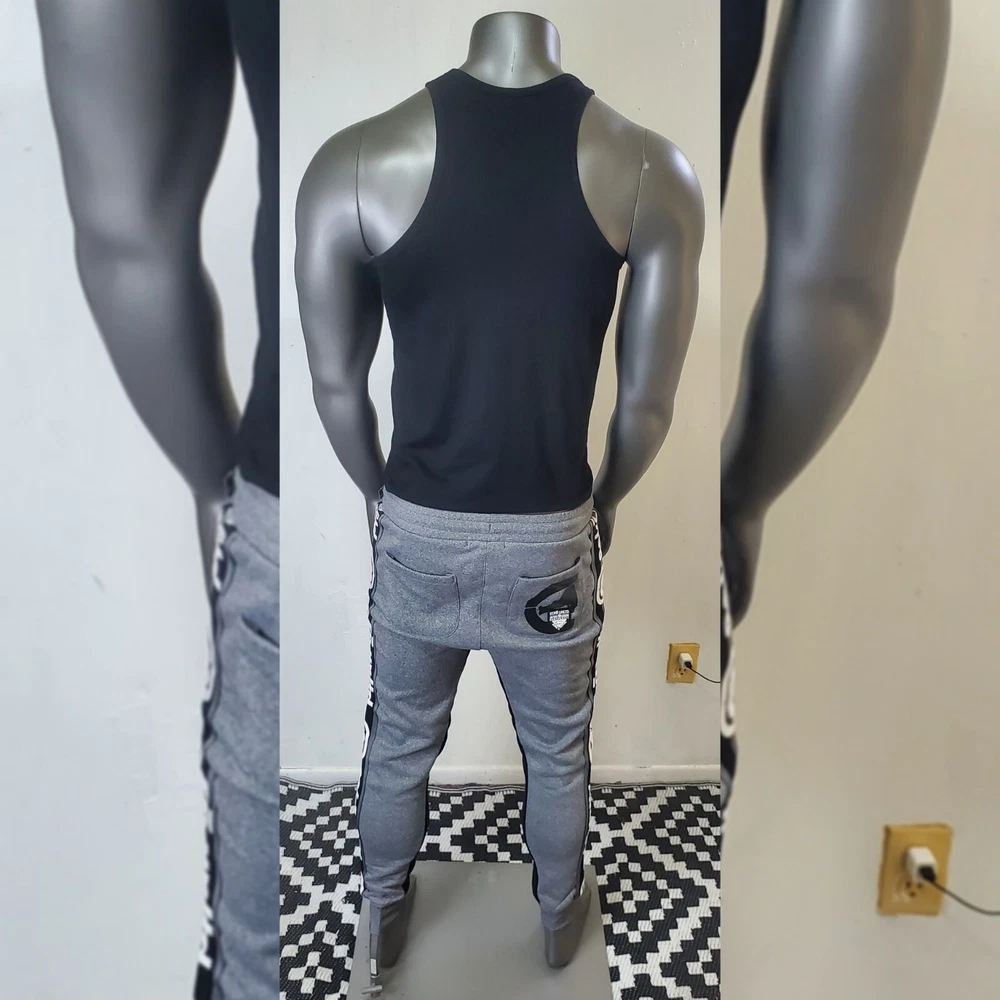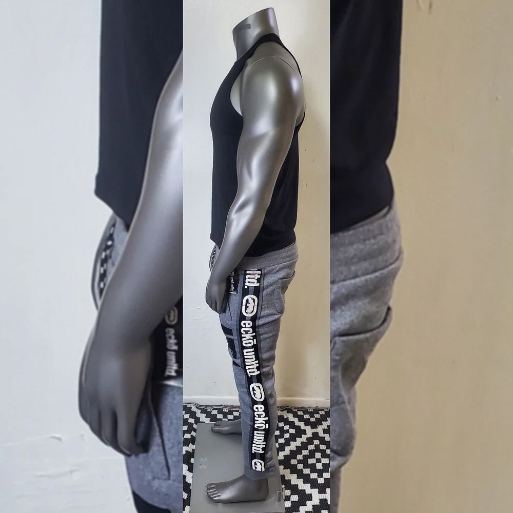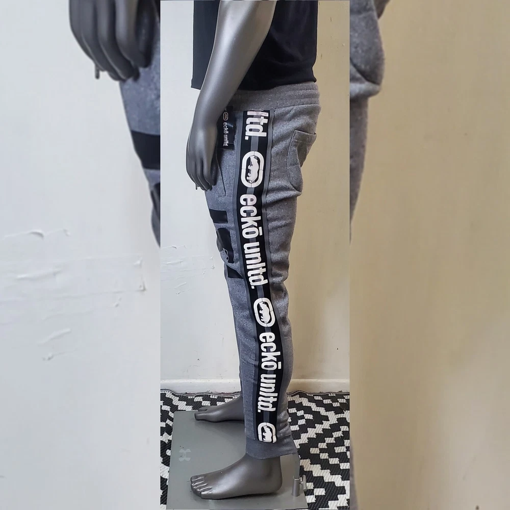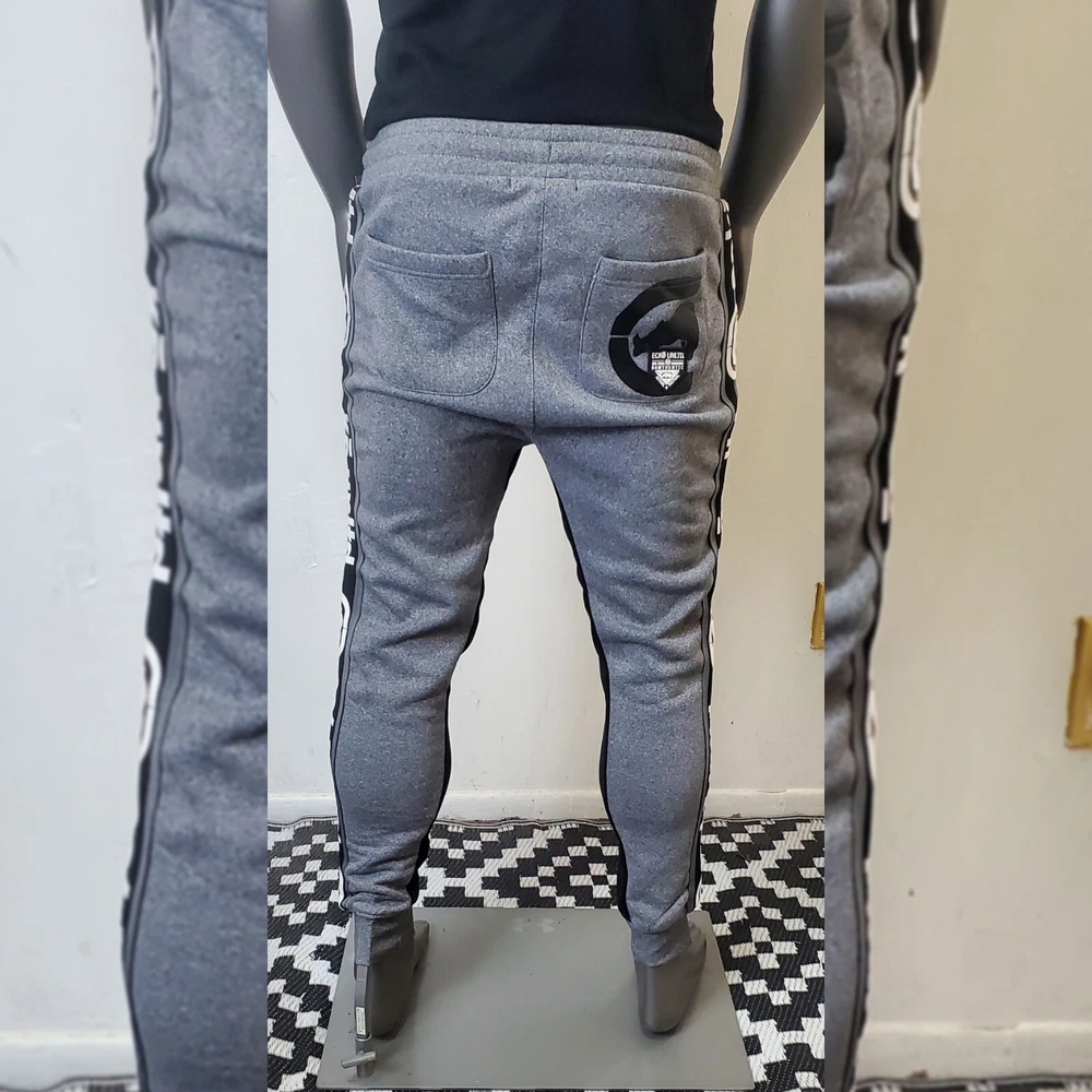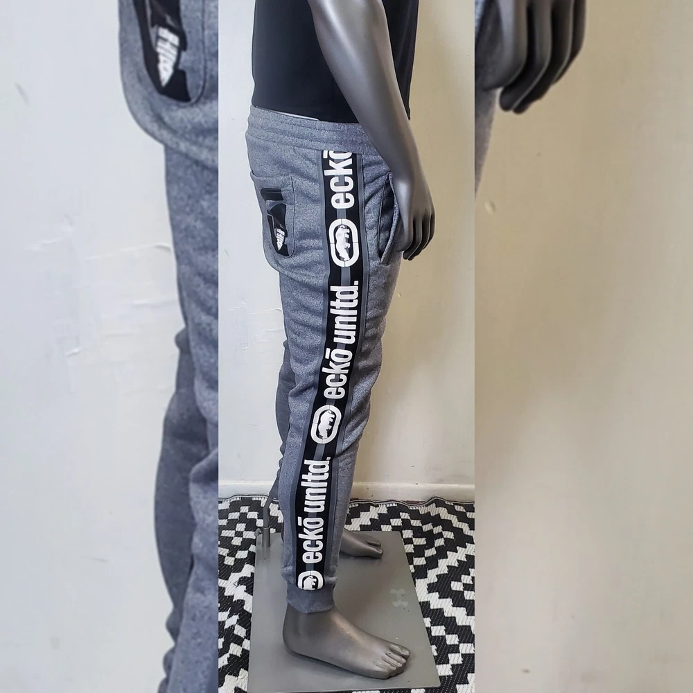 ECKO UNLTD SIDE SEAM PRINTED TAPE FLEECE JOGGER PANTS MEN'S SIZE L GREY MARLED. Condition is "New with tags".The must have jogger of the season The stylish Ecko Unltd Logo tape jogger with stylish taping down the legs.Elevate your look with the faux texture prints and printed tape details on these Ecko Unltd fleece joggers. • Drawstring waist • Imported · Printed tape detailing · Side pockets · Two rear pockets Material & Care · 100% Polyester