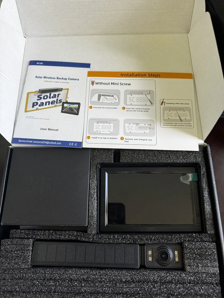 HomeECOCONUT Solar Backup Camera 5'' Monitor + Rear View OPEN BOX