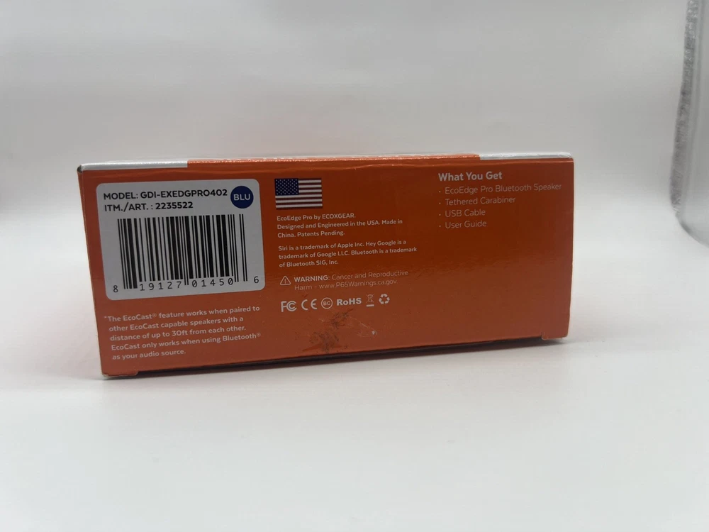 ECOXGEAR EcoEdge Pro Portable Speaker Bluetooth LED Lit Speaker - For Parts Only For Parts Only AS IS - Not Working It Does Charge - it only power on when in charger and turn off immediately- Won’t Turn On Without Charger - DEFECTIVE Please Note Return is Not Accepted