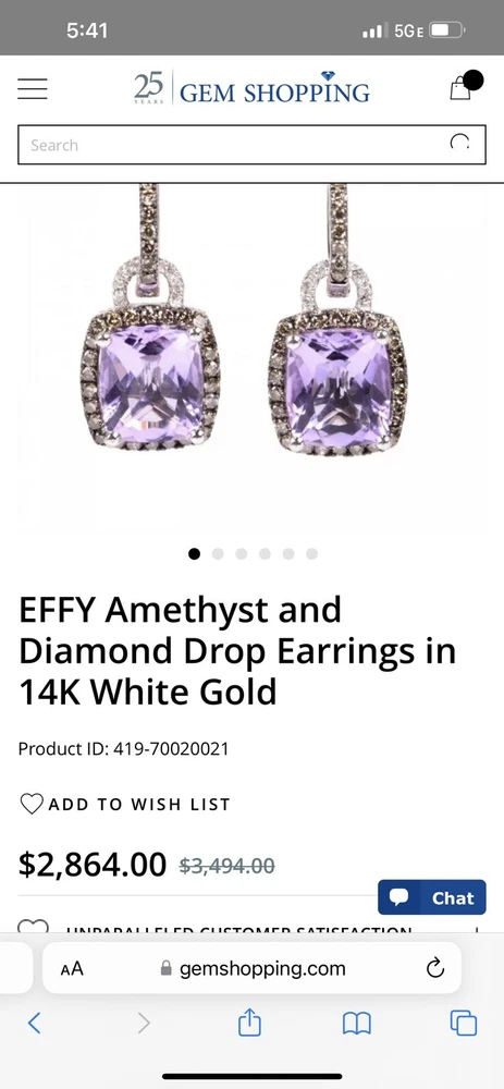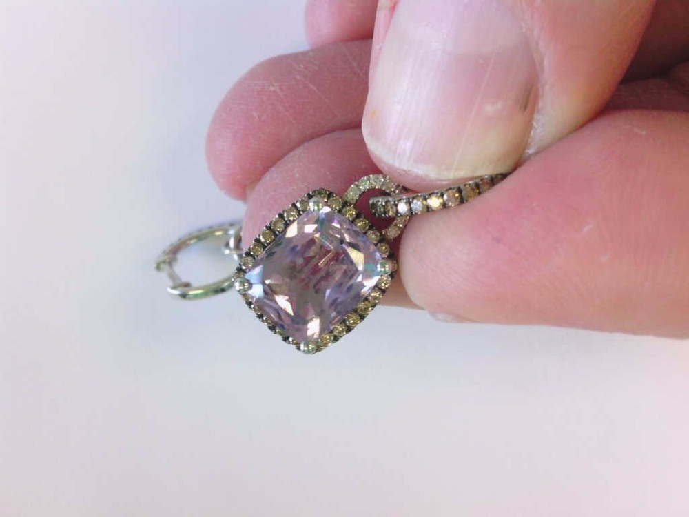 You are viewing a Beautiful EFFY Amethyst/Diamond Drop Earrings in 14K White Gold. BUY NOW!! Read below for further details... THESE ARE THE ONLY PICS AND INFO WE CAN PROVIDE. PLEASE READ LISTING AS SOME SPECS ON THESE EARRINGS ARE INCLUDED. ALSO WE ADDED SOME STOCK PHOTOS FROM AN ONLINE SOURCE. THERE IS NO APPRAISAL NOR DO WE HAVE AN DETAILS ABOUT THE AESTHETICS ON DIAMONDS AND STONES. PLEASE SEE PICS FOR MEASUREMENTS. GREAT "BUY NOW" PRICE! Seller's Notes: I have sold and currently listing some wonderful items to the great people of eBay. This is the exact item you will receive. Overall in excellent pre owned shape- the fact that they are pre owned and not brand new. Lightly cleaned and prefer the new owner to do as they please. Please see pics to determine measurements, etc. See high def pics to determine condition, style, etc. PLEASE CHECK OUT MY OTHER AUCTIONS. THANK YOU. Particulars: Total weight- 7.1 grams. Hallmarks- EFFY, 14K INFO FROM AN ONLINE SOURCE: CATEGORY Earrings PRIMARY GEMSTONE Amethyst MAIN STONE SHAPE Cushion MAIN STONE WEIGHT 6.9 MAIN STONE WEIGHT DESCRIPTOR CTTW METAL COLOR White Gold METAL TYPE 14K DESIGNER Effy ACCENT STONE WEIGHT 0.78 ACCENT GEMSTONE Diamond ACCENT STONE COLOR Brown SEE PICS FOR MEASURMENTS. WILL BE IN THE BOX YOU SEE IN THE PICS. Foreign bidders- total shipping weight will be 4 ounces. Bidding and Shipping: I will ship to 48 states. USPS/UPS Priority with tracking, insurance and signature. Buyer will pay a flat fee of $9.99. Alaska, and Hawaii will pay a shipping rate based on eBay. Overseas shipping using eBay Global Shipping- YES PLEASE NOTE: I WILL NOT SHIP THIS PERSONALLY- MEANING I WILL USE EBAY GLOBAL SHIP TO SHIP THIS ITEM THEREFORE OVERSEAS BIDDERS YOU WILL HAVE IMPORT CHARGES. I DO NOT KNOW OR AM I RESPONSIBLE FOR THOSE CHARGES. PLEASE CONSIDER THIS BEFORE YOU MAKE YOUR BID. THANK YOU. I WILL ALSO OFFER A 2ND OPTION - FOR THOSE WHO DO NOT WANT GLOBAL SHIP. IT MUST BE A RECOGNIZED COUNTRY THAT WILL ALLOW ME TO SHIP THRU EBAY. I WILL NOT CALL THIS ITEM A GIFT WHEN SHIPPING OVERSEAS. Please pay within 2 days after the auction is complete. I usually ship 1-2 days after receiving clear payment. Sometimes sooner depending on time constraints. Item sold "as is" We have the right to end this auction at anytime. I do not ship on Saturdays Great feedback is always appreciated!!! This is a "BUY NOW" auction. Priced to sell!! Will combine shipping- Just let me know. Thank you!! ____________________________________________________________________________ EFFY Earrings ready to be added to your collection. If you have any questions please feel free to contact me at anytime. I usually respond within 24 hours sometimes sooner. Thank you and happy bidding!! PLEASE TAKE A MOMENT AND CHECK OUT MY OTHER AUCTIONS!!