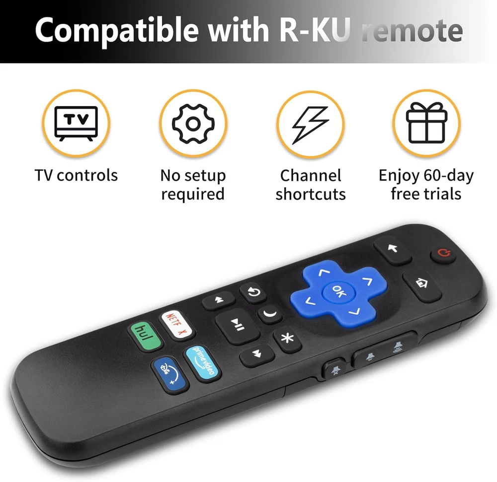Store New Arrivals Add to Favorite View Feedback Contact EFGWXYZ Universal Replacement TV Remote Control for Rku- TV, for Tcl/Hisense/Sharp/Philips/Onn/Element/Insignia Rku- TV.(NOT for Rku- Stick or Box) (2Pack ) (H-NDHS) Description Item model number H-NDHS Item Weight 3.52 ounces Color Purple Product Dimensions 5 x 1 x 0.3 inches Country of Origin China Compatible Devices TCL, Hisense, Sharp, Philips, Onn, Element, Insignia, Westinghouse, JVC, RCA, Sanyo Max Number of Supported Devices 1 Special Feature Universal Brand VENOAL Manufacturer EFGWXYZZ 【Exact Compatibility】:The Remote control is Only for Roku-Series TV, Compatible with TCL-Roku-TV, Hisense-Roku-TV, Onn-Roku-TV, Sharp-Roku-TV, Element-Roku-TV, Westinghouse-Roku-TV, Philips-Roku-TV, Insignia-Roku-TV, JVC-Roku-TV, RCA-Roku-TV, and Sanyo-Roku-TVs. It is not compatible with Roku Sticks, Roku Streaming Sticks, Roku Boxes (1/2/3/4 HD/LT/XS/XD), Roku Ultra, Roku Express, Roku Premiere, or Roku Players CONVENIENT SHORTCUT BUTTONS: The Universal TV Remote features four handy shortcut buttons, making it an ideal replacement for your old or damaged TV-remote ENHANCED PERFORMANCE: Our upgraded remote offers an extended transmitting distance of over 25 feet, a quick response time of 0.3 seconds, and has buttons tested to support more than 120,000 clicks for long-lasting use COMFORTABLE MATERIAL: Crafted from high-quality ABS plastic and silicone, this remote is comfortable and strong. The soft, responsive buttons ensure easy navigation and control USER-FRIENDLY DESIGN: No programming or setup is required to use our remote; insert two AAA batteries (not included), and it's ready to go. The remote offers a seamless user experience. Product Description ABOUT US We offer the best prices around on high quality products. Our E-store includes media such as books, movies, music and games while offering electronics, toys, sporting apparel, clothing, tools, general home, garden items and more. SHIPPING We are always working hard to ensure your package arrives as soon as possible. Please understand that some factors like weather, high postal traffic, and the performance of shipping companies are outside of our control. We offer free shipping to the lower 48 states and ship within 2 business days of payment, usually sooner. We do not accept P.O. Boxes. Please provide a physical address. RETURNS We offer a 30-Day Return Policy on items which you are not completely satisfied with. You have the option for a full-refund or an exchange of the item. No returns are available on items shipped outside of the USA. PAYMENT We accept PayPal. CONTACT US This page content is yet to come Please ad us to your favorite seller and visit again later Thank You CUSTOMER SATISFACTION We try our very best to make sure every customer is completely satisfied. If there's a problem, message us! We're happy to help.
