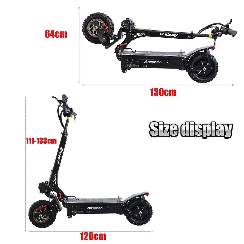 Product Detail: Note:If you have any questions, please contact us before open any case, we promise will solve the problem for you. Thanks! #1(8000W/13in/ D ual Motor) Parameters Standard Specifications 3.Chassis height 135mm 4.Pedal length*width 56*26.5mm 5.Packing size 1510*330*620mm 6.Charging stand (single/dual) double 7.Front and rear shock absorption form(color included):Front hydraulic shock absorber+Rear hydraulic double shock absorber 8.Controller parameters 60V50AH 9.Motor parameters 60V8000W 11.Anti-theft form: key lock 13.Front and rear brake form Front oil brake + rear double large oil 14.brakeback handle has 16.Headlight configuration/horn Dual U7 lights + motorcycle headlights with protective cover + horn 18.Frame material: aluminum alloy + iron 19.Tire size 13 inch road vacuum tire #2(6000W/ 11in /Dual Motor) Features:Lithium Battery / 30000mAh / 60V;Powerful Dual Motors Folding size:1420*2340*500mm Motor power :60V,6000W Battery type:Lithium-ion Battery / 30000mAh / 60V Charging time:7-8 hours (4-5 hours for dual charging) Range (ridingdistance):62 miles / 100 KM Max speed:85km/h (52.8mph) Max load:200 kg / 440 lbs Brake:Hydraulic Disc Brakes Wheel & Tire:11” Inflatable front / rear tires #3(5600W/ 11 in /Dual Motor) Product expansion size: 120*62*111-133cm Product folded size: 130*33*64cm Packing size: 1273*273*515mm Pedal Length*Width: 570*250mm Chassis height: 120mm Charging stand (single/double): double (charging time 6-8 hours) Front and rear shock absorption form: front C-type spring shock absorption + rear spring shock absorption Motor parameters: 60V 2800W * 2 Battery: 60V27AH Anti-theft form: key lock Handlebar (non-adjustable): normal handlebar Front and rear brake form: front and rear oil brake Rear handle: yes Headlight configuration/horn: double U7 lights + motorcycle horn Tail light: turn signal + tail light Marquee: Yes Logo next to the chassis: yes (the same color as the marquee) Frame material: aluminum alloy + iron Tire size: 11 inches off-road tubeless tires Gross weight: 44kg Maximum speed: 70-80KM/H Endurance: 60-80KM Packaging material (inside): carton + pearl cotton Climbing angle: 45-55°#2(8000W/13in/Dual Motor) Product configuration: Material:Full body aluminum alloy Tire size:13 inch (13*5 inch) tubeless tire(Road tires) Load:400KG Motor/speed:13 inch 4000W dual motor(The fastest can reach 85KM/H) brake:Front and rear dual oil disc brakes + EBAS electronic brakes(Letter disc oil brake) Head light:Double U7 headlights protection:Voltage key lock Controller:Dual 60V45A controller Light:Turn signal + brake light + pedal warning light forward Front shock:Long-distance hydraulic shock absorption battery:Domestic 60V43AH Endurance 100-120KM #4(5600W / 11in/ Dual Motor) Motor power: Hall brushless 60V2800W (5600W*2) Electric control power: built-in 60V30A Battery capacity: standard 21700 60V25AH Input voltage: AC100V--250V, 50--60HZ, DC67.2V4A Drive mode: dual drive Maximum load: 200KG (speed 60KM/H) 150KG (speed 90KM/H) Charging time: 10 hours with standard battery Maximum speed: 80----100KM/H Gradeability: 50° Tires: 11-inch tires tubeless off-road #5(3200W/ 11in /Dual Motor) Scooter model: Q7Pro Battery capacity: 52V19A988Wh Motor high-speed motor: 2X1600W Tire type: dual-purpose tire, 10 inches in diameter and 90MM in width. Top speed (km/h): 70km/h. Cruising range (km): 60-70km Applicable terrain: highway, urban cross-country Boot equipment: voltage key lock Headlights: six-lamp bead headlights Charging: Double charging ports and single charger. Service temperature: above-30℃ Maximum climbing degree: 35 Brake type: hydraulic disc brake, brand: Dengfeng Body material: aluminum alloy Body color: main body black Maximum load-bearing capacity of car body (kg): 200kg. Pedal distance from the ground (cm): 17cm Pedal width x length: 22.5CMX53CM Front shock absorption: inverted long-distance hydraulic shock absorption Rear shock absorption: hydraulic shock absorption Controller: 52V28A*2 Packing box size (length, width and height cm): 128 x 30 x 56 cm Vehicle dimensions (mm in length, width and height): the unfolded dimensions are 116*22.5*102-120CM. Folding size (mm in length, width and height): folding size 123*22.5*46CM. Net weight (kg): 30.2kg. Gross weight (kg): 38.5kg. CE: yes FCC: Yes. ROHS: Yes. Other certifications: Yes Motor brand: Gionee Motor model: 10 inches. Rated voltage (V): 52V Rated power (W): 2 * 1600W Battery capacity (ah): 52 v 19 a 988 wh Rated voltage (V): 52V Charging input voltage (v): 58.8 v. Rechargeable times of battery: 1500 times Charging time (h): 4-5h Battery protection board: 60 years. Charger model: 58.8V3A Rated input voltage (V): 100-240 V. Rated output voltage (V): 58.8 V (1V) Rated current (a): 3.0A (0.2A) Controller type: integrated socket controller Working current (a): 28 1A Operating voltage (V): 52V Undervoltage (v): 42v Instrument type (LCD/LED/OLED): LCD. Instrument display parameters: Yes USB output interface: yes Gear: three gears are adjustable. Instruction: Yes. Charger: 58.8V3A charger X1 Seats: one set of seats Front bag: EVA black car 2L waterproof bag Other tools: Hexagon screwdriver set, chain lock, pump, mobile phone bracket. The package includes "vehicle *1, seat *1, charger *1, Hexagon screwdriver set *1, mobile phone bracket *1, 2L black EVA bag #6(2500W/11in / Single Motor) Model Q30 Parameter Standard specification Charging Port (Single/Dual) Dual Front and rear shock absorption form (including color) hydraulic shock absorption + spring shock absorption Motor parameters 48v2500w single motor Battery 48V16AH Anti-theft form key lock handlebar (adjustable) bicycle handlebar Front and rear brake form Disc brake rear handle yes USB Charging Mode (Single/Meter) Large Meter Tire size 11 inch off-road vacuum Gross weight 35kg Maximum speed 55km/h Endurance 45-60KM Packaging material (inside) double-layer carton + pearl cotton Climbing angle 25-35 degrees Tail lights Tail lights + running lights + t