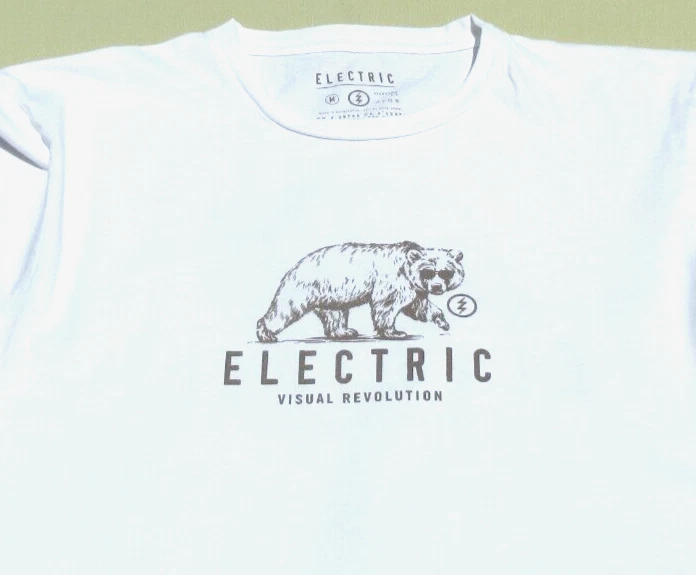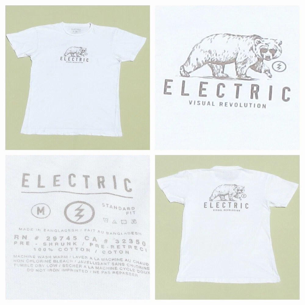 ELECTRIC Visual Sunglasses California Bear Graphic Logo Shortsleeve White Shirt – Men's Medium Size: Men's Medium Manufacturer: Electric Color: White Measurements: Length: 26", Pit-to-Pit: 21“ Material: 100 % Cotton Features: Shortsleeve, crewneck tee with screenprinted graphics on front. Condition: G ently used and in great condition. I am happy to combine shipping on all my auctions, so be sure to check out the other great items I have listed.