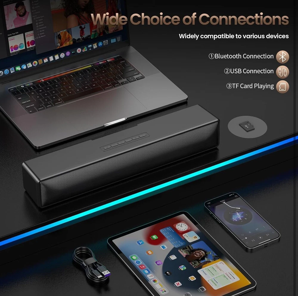 ELECZON EC 17 RGB/ LED LIGHTS /WIRELESS COMPUTER SOUNDBAR w/ Built In Mic