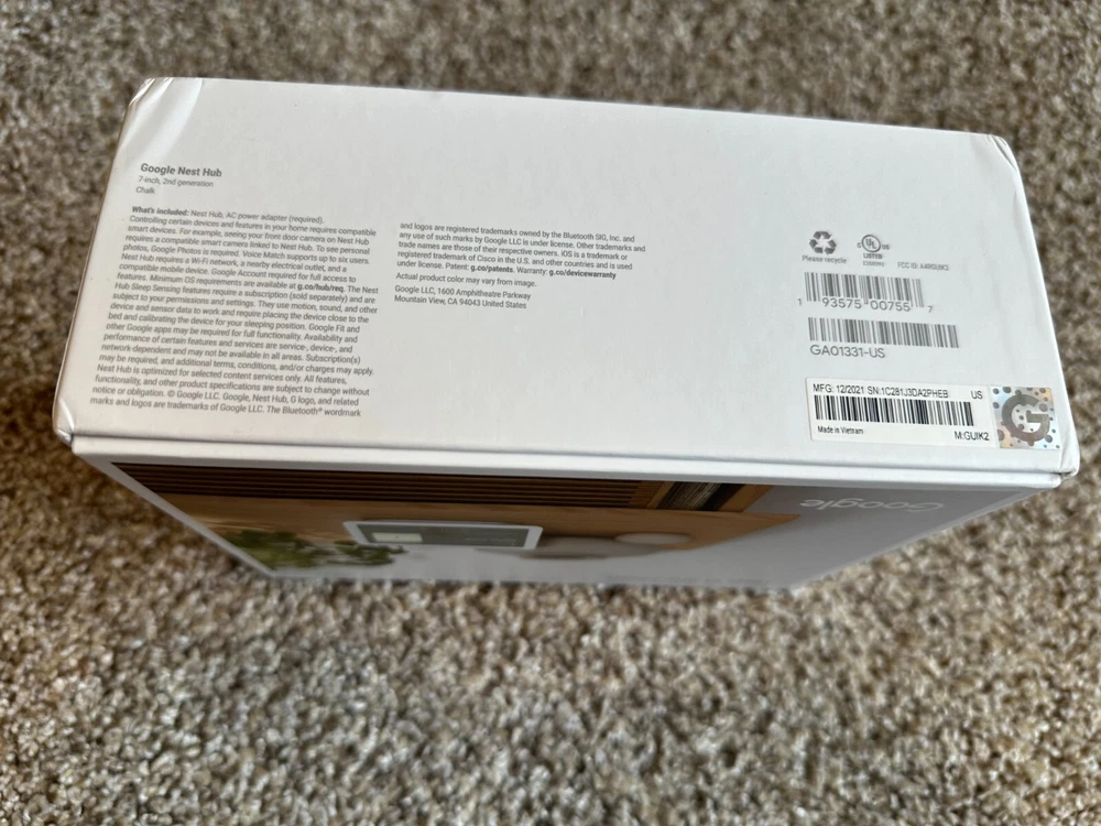 You are purchasing a Preowned EMPTY BOX ONLY Google Nest Hub Display (2nd Gen) Google Assistant, Chalk. This empty box is in good condition but has several corners that are very slightly crushed. Box is EMPTY - No Hub or Accessories are included. Note: I do not ship to Lock, PO or APO Boxes. I only ship to the lower 48 US States at the shipping cost shown, as well as "Free Shipping". If you are in AK, HI or a US Territory, please contact me through eBay before you purchase to see if there are any additional shipping charges. If you are an international Buyer, I ONLY ship using the eBay Global Service. Thank you for your understanding. Your payment is required immediately upon completion of your purchase. No Warranty, Guarantees or Returns.