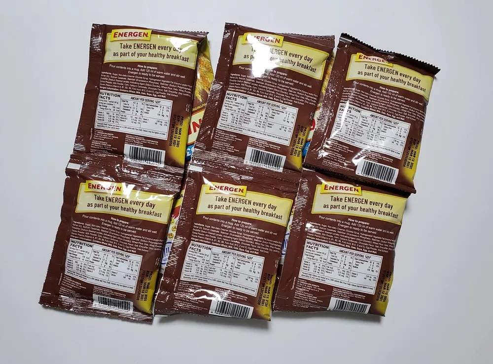 ENERGEN Chocolate Nutritious OAT-CEREAL mix with MILK 40 grams x 10 sachets NOTE: New stocks arrives every month, message me for current expiration date. Energen Chocolate milk and cereal drink is a nutritious Chocolate mix that is easy to prepare with hot water. Complete with cereals and vitamins This drink is an instant to make cereal drink with milk powder through it. Easy to make and o so tasty and healthy. Rich in vitamins, contains many good ingredients to start your day in a healthy way. 1 sachet is sufficient for 1 full cup of hot cereal milk drink. Ingredients: Sugar, Non-dairy Creamer (Glucose Syrup, Hydrogenated Vegetable Fat (Coconut and/or Palm Kernel Oil), Sodium Caseinate, Stabilizer (Di-potassium Phosphate), Stabilizer (Sodium Polyphosphate), Emulsifier (Sodium Stearoyl Lactate), Anticaking Agent (Silicon Dioxide), Wheat Flour, Oats, Whey Powder, Cocoa Powder, Milk Powder, Corn, Calcium Carbonate, Chocolate Flavor, Salt, Emulsifier (Soy Lecithin), Vitamin Premix (Vitamin A, B1, B2, B6, Folic Acid, B12, D and E), Egg Powder, Malt Extract. Allergen Information: Contains Wheat, Milk, Oats, Soya, Egg and Malt ENERGEN Vanilla Nutritious OAT-CEREAL mix with MILK 40 grams x 10 sachets Energen Vanilla milk and cereal drink is a nutritious Vanilla mix that is easy to prepare with hot water. Complete with cereals and vitamins This drink is an instant to make cereal drink with milk powder through it. Easy to make and o so tasty and healthy. Rich in vitamins, contains many good ingredients to start your day in a healthy way. 1 sachet is sufficient for 1 full cup of hot cereal milk drink. INGREDIENTS: WHOLE GRAIN WHEAT, RICE, SUGAR, MILLED CORN, WHEAT BRAN, SOLUBLE WHEAT FIBER, CONTANS 2% OR LESS OF SALT, BROWN RICE SYRUP, MALT FLAVOR, NATURAL FLAVOR, BHT FOR FRESHNESS. ENERGEN PANDESAL MATE CREAMY AND CHOCOLATEY DRINK 30 grams x 10 sachets Energen Pandesal Mate is a product made with pandesal pairing in mind that is why it is made thick and rich that’s perfect with it. High source of Vitamin B2 and B3. Thick and rich chocolate Drink Pandesal’s delicious Partner. INGREDIENTS: SUGAR, NON-DAIRY CREAMER(GLUCOSE SYRUP, FULLY HYDROGENATED VEGETABLE FAT (COCONUT AND/OR PALM KERNEL OIL), SODIUM CASEINATE, STABILIZER (DI-POTASSIUM PHOSPHATE), STABILIZER (SODIUM POLYPHOSPHATE), EMULSIFIER (SODIUM STEAROYL LACTYLATE, ANTICAKING AGENT (SILICON DIOXIDE), COCOA POWDER, FOAMING CREAMER(GLUCOSE SYRUP SOLIDS, VEGETABLE FAT, MILK SOLIDS, STABILIZER (DI-POTASSIUM PHOSPHATE), FLAVORING, FULL CREAM MILK POWDER, MALT EXTRACT POWDER, VEGETABLE STABILIZER (SODIUM CARBOXYMETHYL CELLULOSE), ARTIFICIAL FLAVOR, SALT. ALLERGEN INFORMATION: CONTAINS MILK AND MALT AND MAY HAVE TRACES OF MAIZE AND SULPHITE. How to prepare Put the contents of this bag in a cup Boil water and pour approximately 150 ml into the cup Stir well and enjoy Reminder before you buy: We are located in the Northern Mariana Islands (United States Territory) which is outside the US. Domestic shipping time via first class mail or priority mail is between 10-15 days depending on your location. International shipping time via priority mail is between 15-30 days depending on your location. Please take note of this when giving feedback rating on "Shipping Time". Thank you for your understanding and consideration.