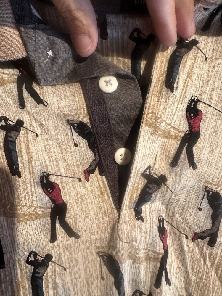 This ENRO men's pull-over shirt features a fun and unique golfers pattern, perfect for any golf enthusiast. Made from comfortable cotton fabric, this shirt is designed with short sleeves and a regular fit for maximum comfort. The multicolor design adds a touch of style to any outfit, making it a versatile addition to your wardrobe. Ideal for casual occasions, this button-up shirt is a must-have for any fashion-conscious man.