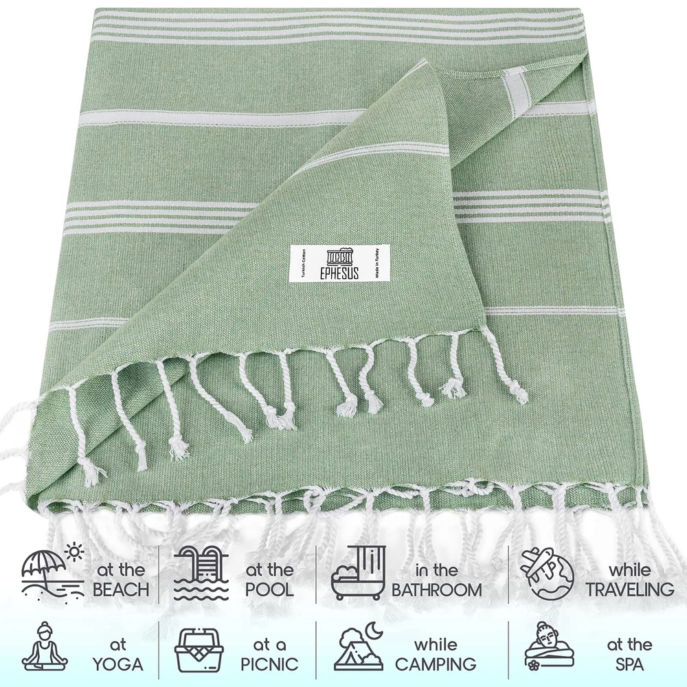 Turkish Beach Towel - 38x70 inch Oversized - Sultan Design - Turkish Towel for Beach, Bath, Pool, Gym, Yoga - Prewashed, Lightweight, Quick Dry (Apple Green, Sultan) Our Turkish beach towel is much thinner than standard towels and takes up very little space in your bag. Thus, it offers a very practical solution during your travels. Say goodbye to damp towels! This quick-drying design saves you time and energy in the laundry. Also, a simple shake removes the sand. Our towels are pre-washed and Made in Turkey. This isn't just a beach towel! Use it as a yoga mat, picnic blanket, cozy wrap, or stylish cover-up. With a lot of vibrant colors to choose from, find the perfect one to match your personality. The Gift of Relaxation: Surprise your loved ones with the Turksh Beach Towels. Our Turkish beach towels make fantastic birthday, housewarming, or any occasion gifts for men and women who appreciate style. Turkish Beach Towels: are made from high quality cotton polyester blend. They are sourced from traditional Turkish bath culture. Our Turkish beach towels can also be used at bath, pool, gym or yoga. They are very large in size so you can use them as blanket. have a multi-purpose use and decorative value. You will feel yourself in luxury with the modern design of the original Turkish Peshtemal Beach Towel! It is highly absorbent and ideal for use at the spa, poolside or just at home. It is thinner than terry cloth and dries incredibly quickly, making it less prone to odor formation. And because it's super soft, it's gentle enough for babies and those with sensitive skin.With their versatile use, they are the best travel companions. Use it as a beach towel, beach blanket, Our towels are available in many colors. MULTI-PURPOSE USE Beach Pool towelsBath towelSPA, Fitness and Yoga towelIn daily life. E.g; Pareo, Scarf, Sarong, ShawlBeach Blanket, Picnic Blanket, Travel Blanket and Baby Care.Fouta towelSofa, chair and tableclothCamping and Picnic BlanketWall and door Tapestry Care Instructions Machine Wash 85-100°F (30-40°C)Do not bleachSoftener According to DesireUse a Hot Iron to Smooth Unwanted Wrinkles.Low Dry or Line Dry. Shipping We offer FREE shipping on all orders! We ship within Three business days of payment, usually sooner. We use a selection of shipping services such as UPS, FedEx, USPS etc. We only ship to the lower 48 states, no APO/FPO addresses or PO Boxes allowed. Local pickups and combined shipping options are not provided at this time. Return You can return a product for up to 30 days from the date you purchased it. Any product you return must be in the same condition you received it and in the original packaging. Please keep the receipt. Payment We accept payment by any of the following methods: PayPal Please pay as soon as possible after winning an auction, as that will allow us to post your item to you sooner! Feedback Customer satisfaction is very important to us. If you have any problem with your order, please contact us and we will do our best to make you satisfied. Contact Us If you have any queries, please contact us via ebay. We usually respond within 24 hours on weekdays. Please visit our eBay store to check out other items for sale! Thank you for shopping at our store.