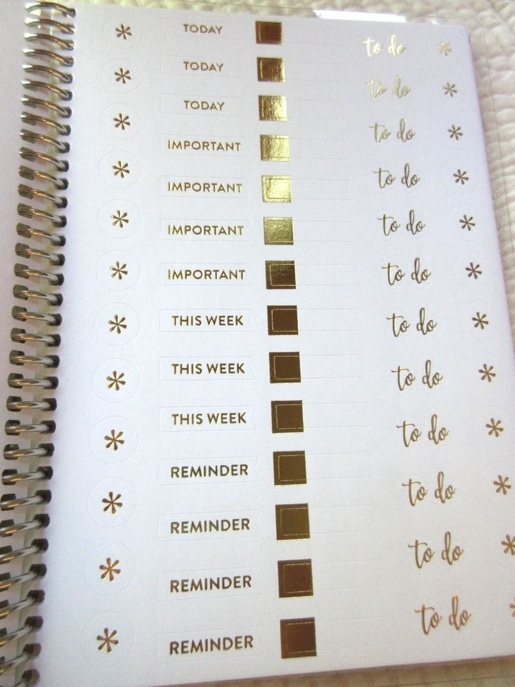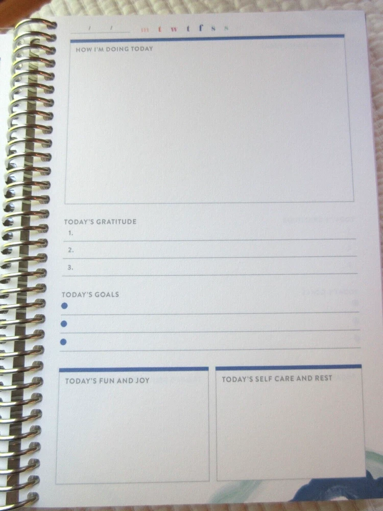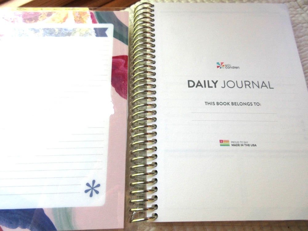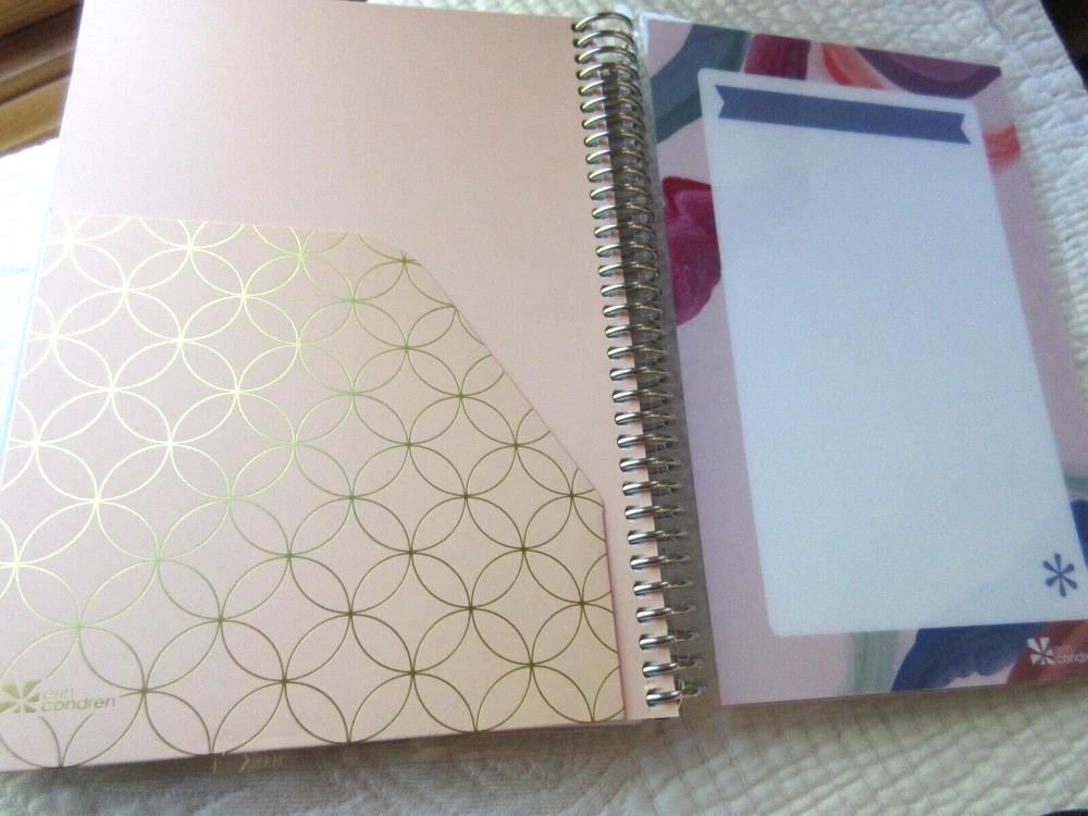 New daily journal by Erin Condren. MADE IN THE USA, quality materials and construction, heavy laminate cover front and back, fill in the date sheets, two pockets in rear for notes, and 4 sheets of reminder stickers. Watercolor design on front and back with the reminder that "each day is a fresh start". See photos for detail. Will be shipped Media Mail USPS. Thank you for shopping with us!