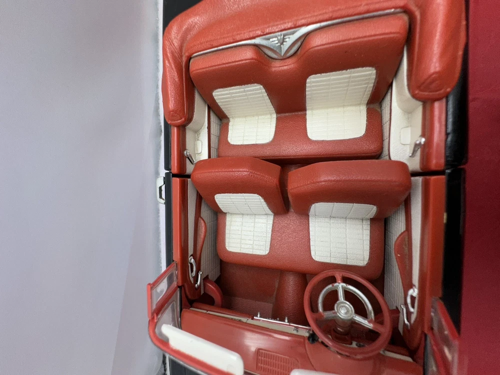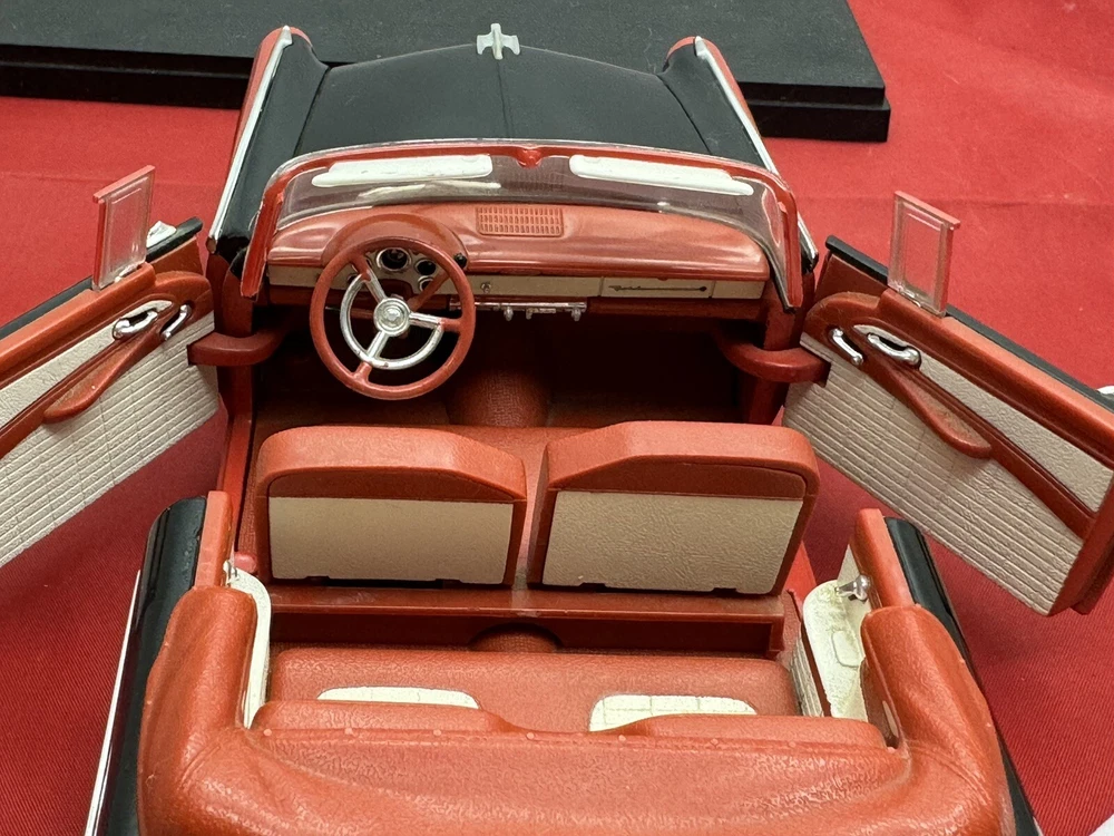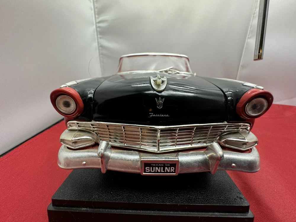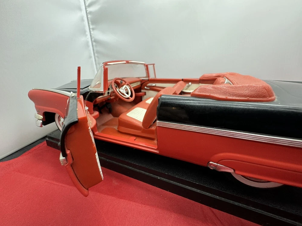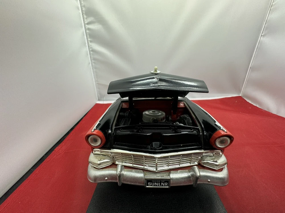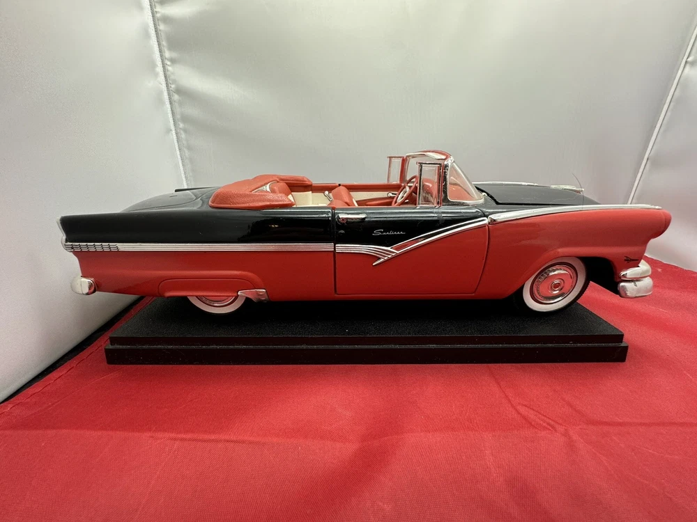 This ERTL American Muscle diecast model of a 1956 Ford Fairlane Sunliner Convertible is a must-have for any car enthusiast or collector. The 1:18 scale model features a red and black color scheme, with intricate detailing that make it a standout piece in any display. Parts missing The limited edition model is made from high-quality materials and is recommended for adult collectors. The Fairlane Sunliner model is part of the ERTL American Muscle series and is a great addition to any collection.