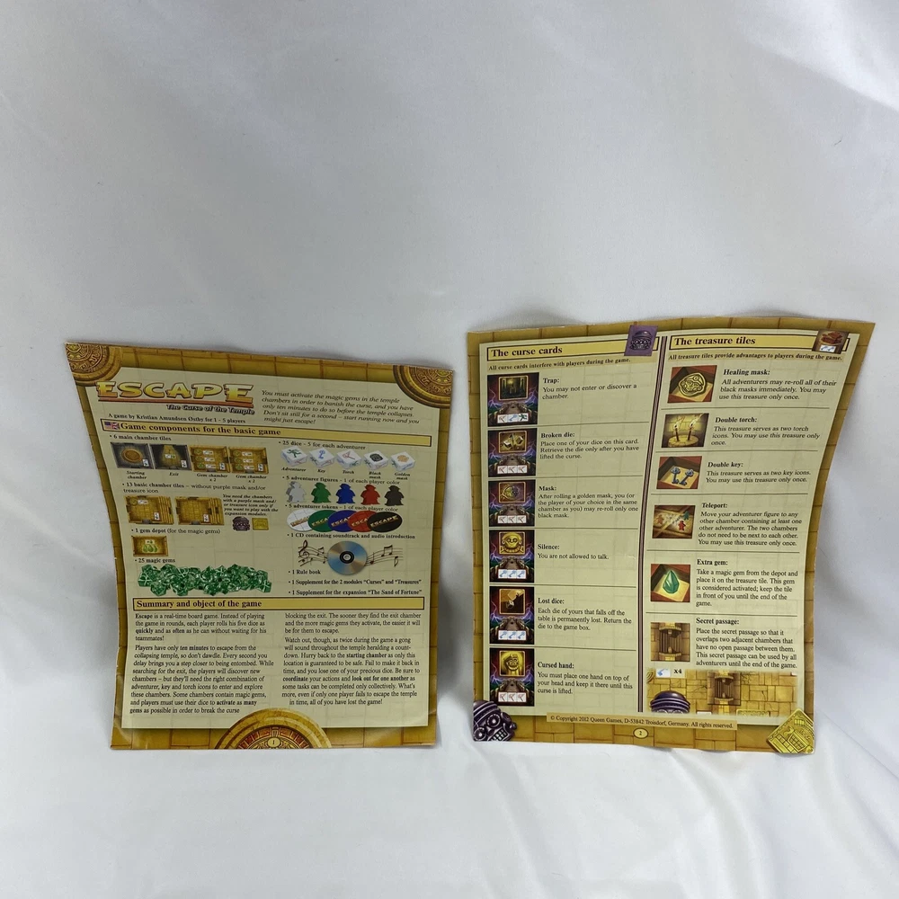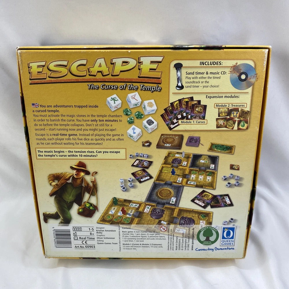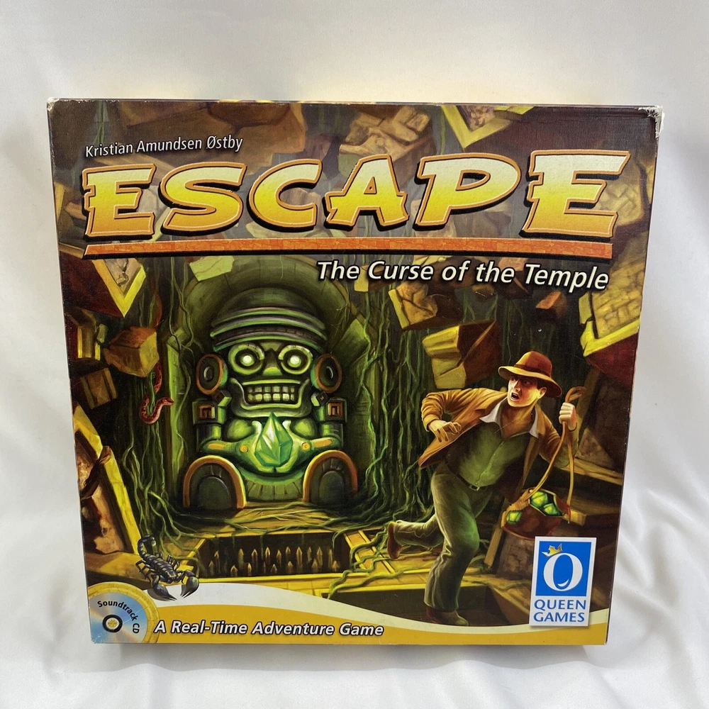 ESCAPE CURSE OF THE TEMPLE Real Time Adventure Board Game Queen Games 99% COMPLETE Missing 3 gems and 1 player figure Everything else is accounted for Real photos