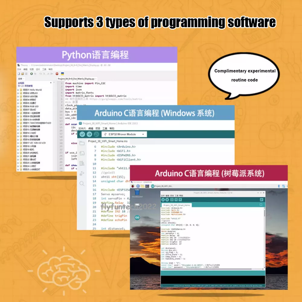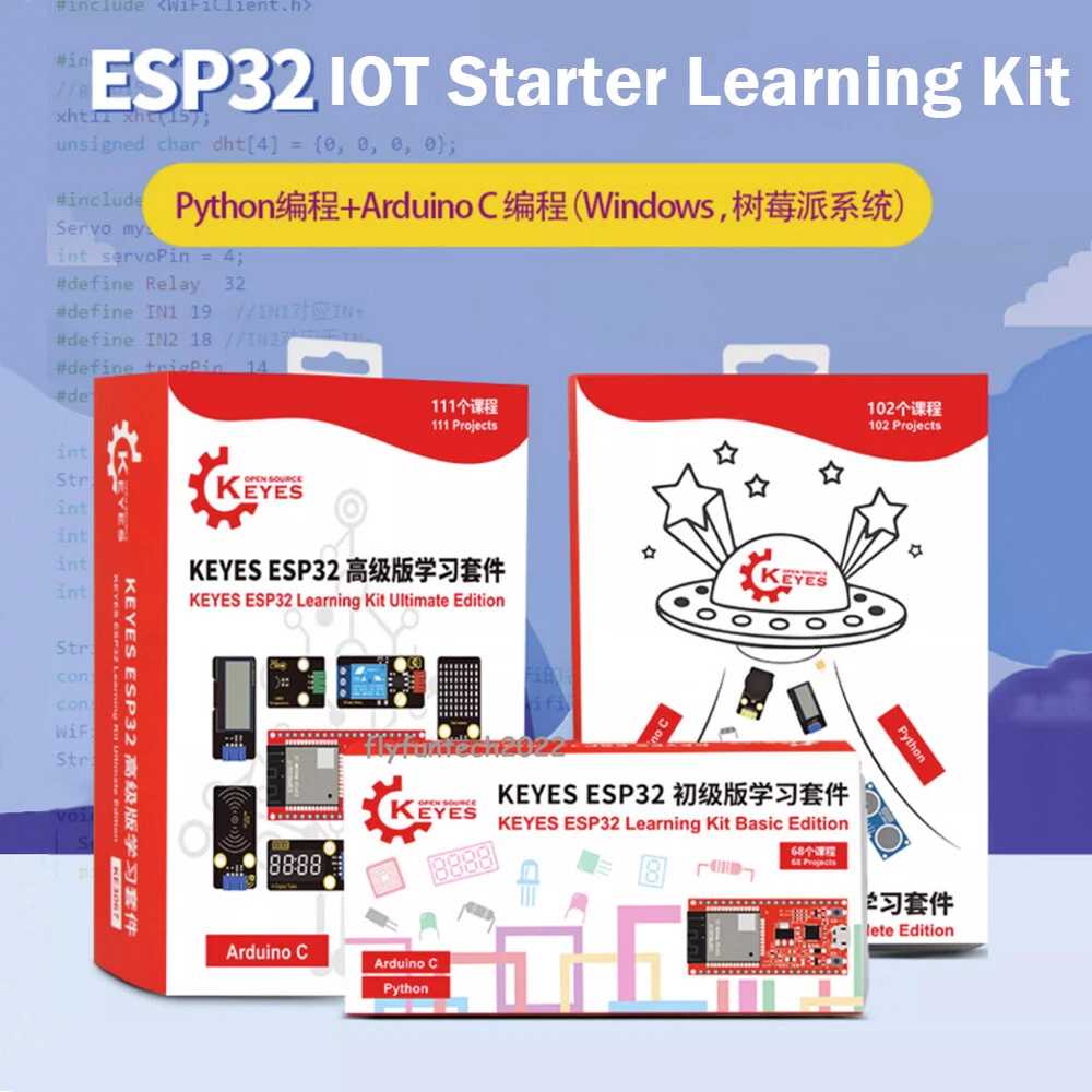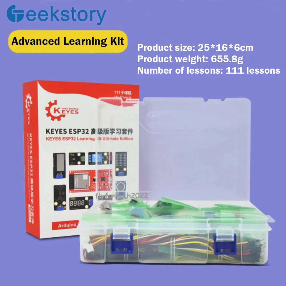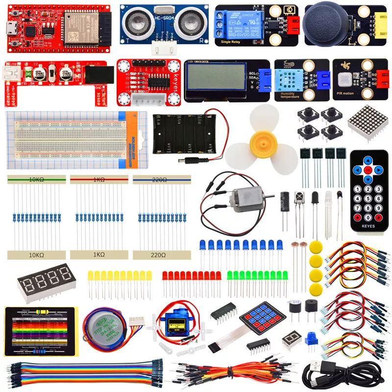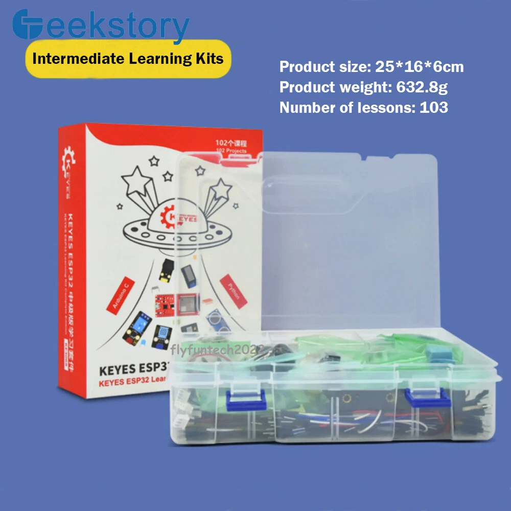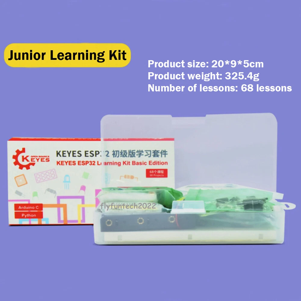 20kg Digital Load Cell Weight Sensor HX711 AD Module Pressure Sensor for arduino Description: Two selectable differential input channels On-chip active low noise PGA with selectable gain of 3264 and 128 On-chip power supply regulator for load-cell and ADC analog power supply On-chip oscillator requiring no external component with optional external crystal On-chip power-on-reset Simple digital control and serial interface:pin-driven controls no programming needed Simultaneous 50 and 60Hz supply rejection Current consumption including on-chip analog power supply regulator: normal operation<1.5mApower down<1uA Operation supply voltage range: 2.6~5.5V Operating Temperature Range:-20°~+85° Package Includes: 1 X Load Cell 1 X HX711 Module 1 X Dupont Cable 1 X Acrylic Disc 1 Set Other accessories ESP32 Development Board IoT Starter Kit Python/c/c++ Compatible with Arduino Bluetooth Wifi Remote Basic/Intermediate/Advanced Edition Description: Keyes ESP32 IoT Starter Learning Kit has three kinds to choose from, they are Advanced, Intermediate and Beginner three kits, the kits mainly contain some of our commonly used electronic components/sensors/modules, and they also contain ESP32 motherboard and breadcrumbs and so on. Each tutorial has detailed wiring diagrams, component knowledge and project code, etc. It is totally suitable for beginners. The code in each project tutorial is written in MicroPython for Windows OS (Thonny Software), Arduino IDE for Windows OS and linux OS (Raspberry Pi), making it very easy to get started. With one controller (ESP32) many sensors/modules and electronics you can do many wonderful DIY projects. These lessons will give you a deeper understanding of programming methods, logic, electronic circuits and linux operating system (Raspberry Pi). ESP32 mini development board: The keyes ESP32 Core board is a mini-development board based on the ESP-WROOM-32 module, the industry's leading integrated WiFi + Bluetooth solution, with fewer than 10 external components, which integrates antenna switches, RF baluns, power amplifiers, low-noise amplifiers, filters, and power management modules. module. At the same time, it also integrates the antenna using TSMC low-power 40nm technology, power performance and RF performance, safe and reliable, easy to expand to a variety of applications. Support three programming software (Python/Arduino C-Windows/Arduino C-Raspberry pi) Product Included: 1*Primary Learning Kit 1*Intermediate Learning Kit 1*Advanced Learning Kit See more in the flyfuntech2022