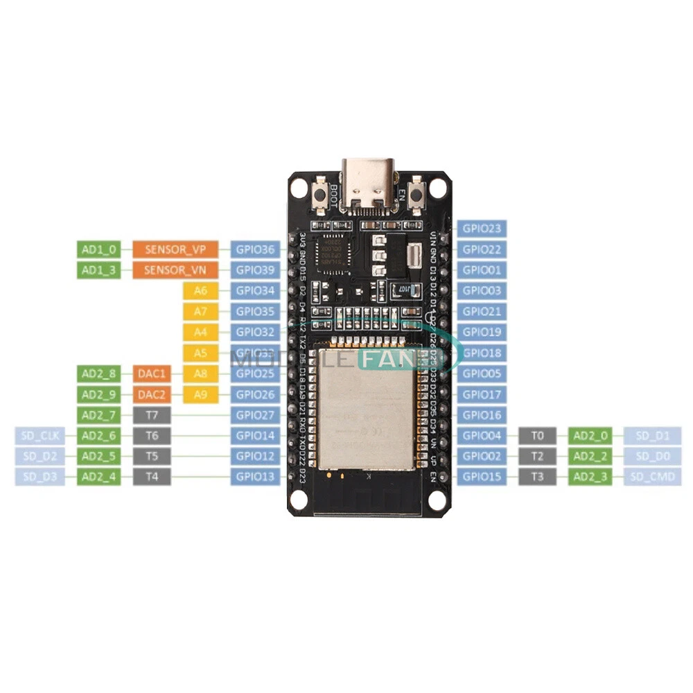 Feature Products ESP32 ESP-WROOM-32 WIFI IoT Development Board CP2102 version 30Pin Soldered Description The module body ESP-WROOM-32 module, peripheral use of USB to serial chip CP2102 to extend the TYPE-C interface, can be directly connected to the computer with TYPE-C debugging, fast and stable data transmission. It has power indicator (red light) and working status indicator (blue light), you can know the status of the module at any time. There are two touch buttons, one to reset and the other to enable the module to enter the download program mode. In addition, there are pins on both sides of the development board for easy connection. The module has powerful Bluetooth and WIFI functions. As a Bluetooth and WIFI development board, it can get rich resources. In addition, the module supports a variety of development environments, which expands the range of resources available to it and greatly improves the ease of learning and development. Of course, it can also be widely used in IoT applications, such as home automation, wireless industrial control, wireless positioning system signals, etc. Main features The module is ESP-WROOM-32 development board, ESP-WROOM-32 parameter characteristics are also the parameter characteristics of the module. 802.11B/G/WIFI+BT module. Low power dual-core 32-bit CPU, can be used as application processor. Main frequency up to 240MHZ, computing power up to 600DMIPS. Built-in 520KB SRAM. Support UART/SPI/I2C/PWM/DAC/ADC and other interfaces. Support OPENOCD debug interface. Support a variety of hibernation modes, deep hibernation, the current is as low as 6.5UA. Embedded LWIP and FREERTOS. Support STA/AP/STA+AP mode. Support SMART CONFIG/AIRKISS one-touch networking. General AT command, easy to get started. Support local serial port upgrade and remote upgrade Product parameters: Size: W*L 28.5mm*51.8mm SPIFlash: default 32M bit Bluetooth: Bluetooth 4.2BR/EDR and BLE standard Wi-Fi: 802.11b/g/n/ Supported interfaces: UART, SPI, SDIO, 12C, PWM, 12S, IR, ADC, DAC On-chip sensors: Hall sensor, temperature sensor, capacitive touch sensor lO ports: 22 Serial port rate: default 115200bps Spectrum range: 2412~2484MHz Antenna form: on-board PcB antenna, gain 2dBi Transmit power. 802.11b:17 earth 2dBm(@11Mbps) 802.11g:14+2dBm(@54Mbps) 802.11n:13±2dBm(@MCS7) Receiving Sensitivity. CCK,1Mbps:-90dBm CCK,11Mbps:-85dBm 6Mbps(1/2BPSK):-88dBm 54Mbps(3/ 464-QAM):-70dBm MCS7(65Mbps,72.2Mbps):-67dBm 功耗:300mA@3.3v Security:WPA/WPA2/WPA2-Enterprise/WPS Power supply range:usB power supply:5v vin foot power supply:5.0v~12V Product List: 1X development board Shipping Policy Item Location Payment Mathord Returns Policy About Feedback Shipping Policy 1. We Ship to Worldwide 2. We ship your orders within 1-2 business days after the payment cleared. 3. Item shipped from China via china Post Airmail, reach most of the countries within 2 to 4 weeks. 4. Delivery time depends on destination and other factors, it may takes up to 20 days. If you don't receive the item after 30 days,please keep in touch with us, we'll investigate and solve the delivery problem. 5. Import duties, taxes, and charges are not included in the item price or shipping cost. These charges are the buyer's responsibility. Please check with your country's customs office to determine what these additional costs will be prior to bidding or buying. Item Location ShenZhen Payment Mathord 1. We accept PAYPAL only. 2. Payment must be made within 7 days of auction closing (Unpaid dispute will automatically open when item is not paid in 7 days). 3. PLEASE NOTE: SHIPPING&HANDING DOES NOT INCLUDE DUTIES, LOCATL TAXES OR ANY OTHER IMPORTATION FEES. 4. Please list your special requests (color, packages, value of declaration, etc.) in the EBAY NOTES SECTION when you make payment Returns Policy 1. Customer satisfaction is our top goal. All products are quality checked. They are new and in good condition when shipped to our customers. If product is defective or damage upon arrival, or wrong product shipped, please keep in touch with us immediately. Returns accepted within 14 days of delivery date and item must be in original new condition, not worn or altered in any way with attached tags & wrap. Otherwise deal is final. Return shipping must be paid by buyer. 2. Please keep in touch with us first if you have anyproblems/questions/concerns. We will be happy to resolve any issues you may have in a cordial and friendly manner. 3. We appreciate your Positive Feedback, and will do the same in return. PLEASE DO NOT leave negative feedback without first communication with us. Please allow max 24 HOURS for us to respond About Feedback We maintain high standards of excellence and strive for 100% customer satisfaction! Feedback is very important to us. We request that you keep in touch with us immediately BEFORE you give us neutral or negative feedback, so that we can satisfactorily address your concerns.It is impossible to address issues if we do not know about them!