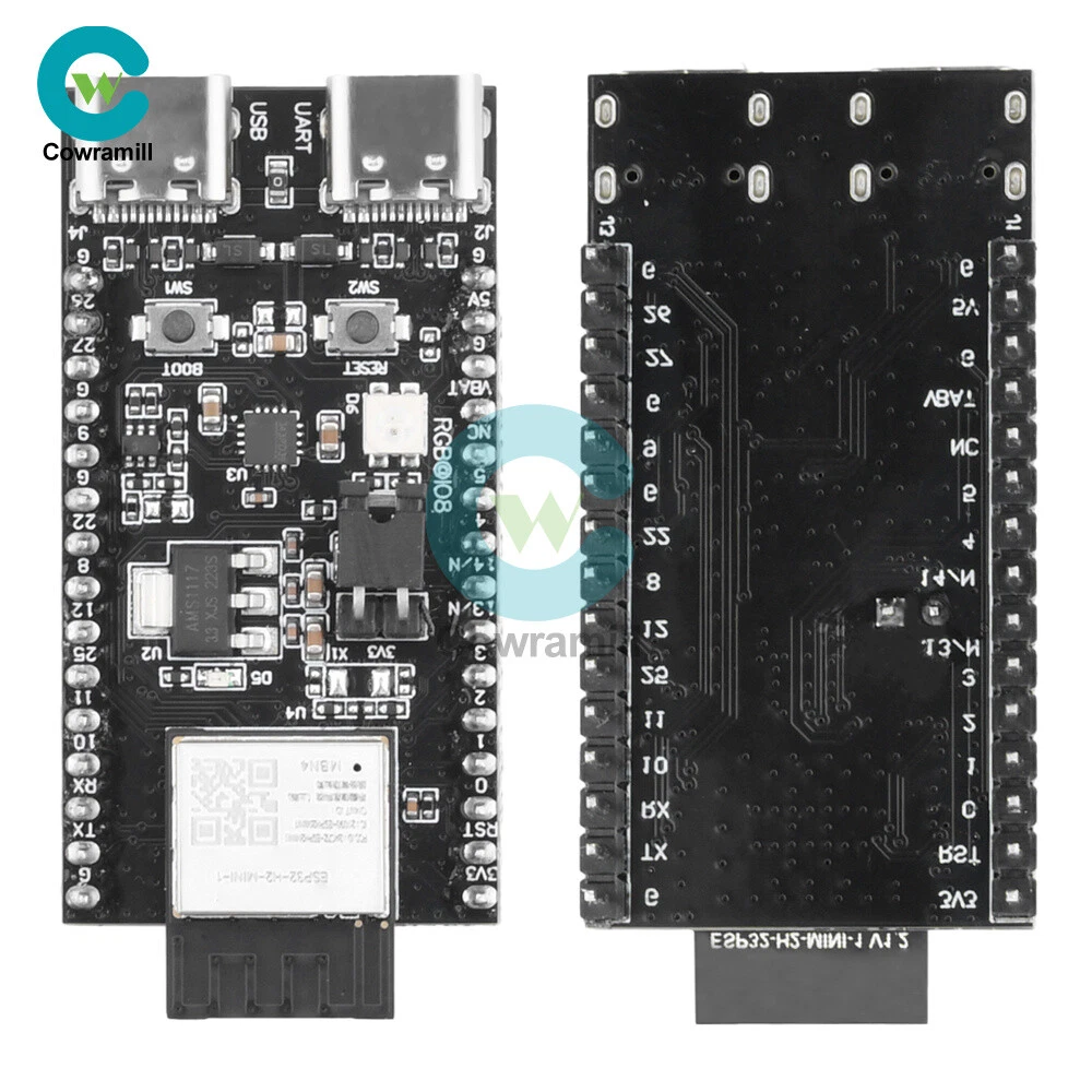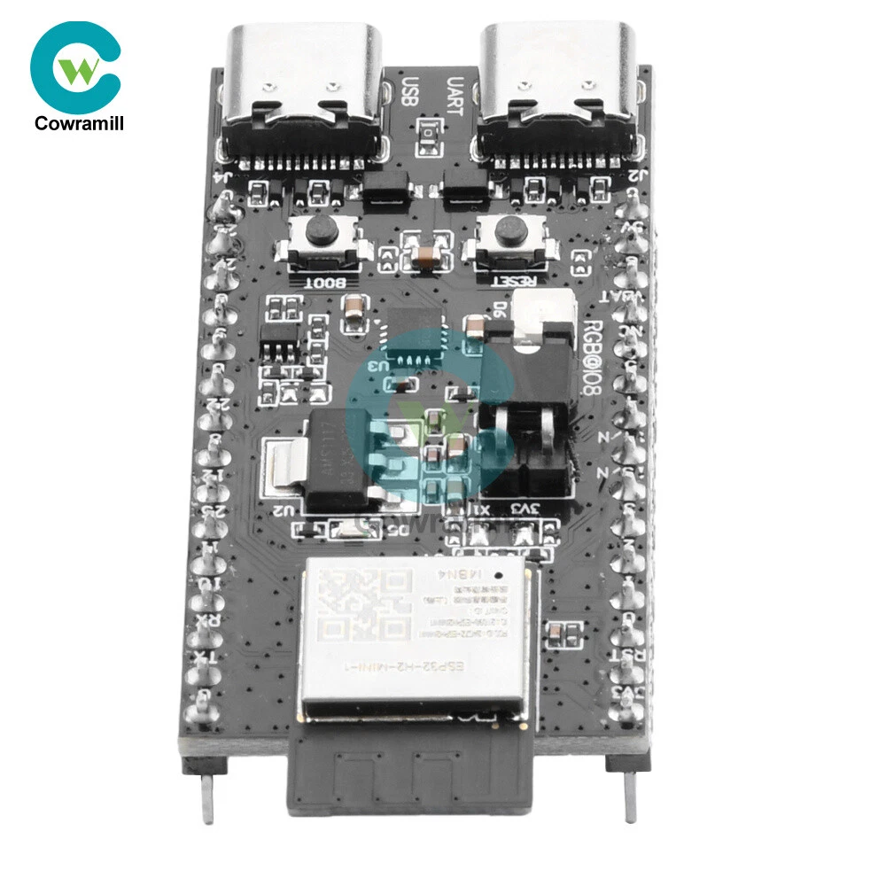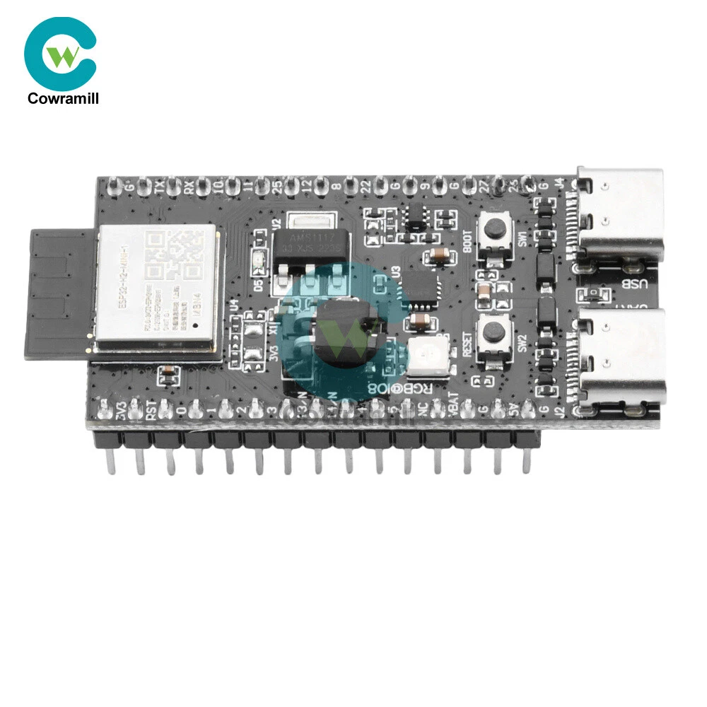 Details Features 1.ESP32-H2-DevKitM-1 is an entry-level development board, equipped with low-power Bluetooth R and IEEE 802.15.4 dual-mode module ESP32-H2-MINI-1. 2. Most of the pins of the module on the board have been pinned out to the two sides of the development board, developers can easily connect a variety of peripheral devices through the jumper according to the actual needs of the developer, and can also be used to plug the board into the breadboard. 3.ESP32-H2-MIN1-1 equipped with ESP32-H2 chip, supports a variety of protocols, suitable for a variety of low-power IoT application scenarios. 4. With power indicator, when the board is connected to the USB power supply, the indicator will light up. 5. Support three power supply modes, more convenient to use. Specification ESP32-H2-MINI-1: ESP32-H2-MIN1-1 equipped with ESP32-H2 chip, integrated 2.4 GHz receiver compatible with low-power Bluetooth and IEEE 802.15.4 technology, support Bluetooth 5 (LE), Bluetooth mesh, Zigbee, Thread and Matter and other The protocols are suitable for a wide range of low-power IoT applications. Pinout: All available GPIO pins (except SPI bus of fash) have been pinned out to the pinout of the development board. 3.3V Power Indicator: This indicator lights up when the development board is connected to USB power. 5V to 3.3V LDO: Power converter with 5V input and 3.3V output. USB to UART Bridge: Single chip USB to UART bridge that provides up to 3Mbps transfer rate. ESP32-H2 USB Type-C Interface: USB Type-C interface for the ESP32-H2 chip, supports USB 2.0 full-speed mode with a data transfer rate of up to 12Mbps (note that this interface does not support 480 Mbps high-speed transfer mode). Boot key: Download key, press the Reset key while holding down the Boot key to enter the "Firmware Download" mode and download the firmware through the serial port. Reset key: Reset key. USB Type-C to UART Interface: Can be used as the power supply interface of the development board, and also can be used as the communication interface to communicate with the ESP32-H2 chip through the on-board USB to UART bridge. RGB LED: Addressable RGB light-emitting diode, driven by GPIO8. J5: Used to measure current, see chapter, Measuring Current, for details. You can choose any one of the following three power supply methods to power the development board. 1. USB Type-C to UART interface power supply (default) 2.5V and G (GND) pin power supply 3.3V3 and G (GND) pin power supply List 1 x Development Board Shipping Payment Return Policy Shipping 1.We only ship to the confirmed address provided by eBay. please make sure your ebay address is 100% matches the address you would like us to ship to. If not, please let us know before we sent you the package, or we will not be responsible for any loss. hope you could understand. 2.Orders will be processed instantly and dispatched within 1-2 business days except hoilday, so we do NOT accept any email/message note after you place orders. 3.All package need to wait 30 days, Please take care it.Less than 30 days,we can't take a refund . Payment 1.We accept PayPal payment ONLY, and must be received within 5 days from the date of purchase. 2. It is easy and safe for you to pay by credit cards, debit cards, bank transfers and PayPal account balances. 3.Buyers are responsible for import duties,custom fees and taxes, if any, please check your country. Return Policy 1.We believe our items are so outstanding. We are convinced you will be happy with your Purchase. 2. If you do not satisfy with our items. Please simply return to us within 30 Days in original condition. Just pay for the returned postage. Then we can issue full refund or resend the item to you after the returned item arrived at our warehouse. 3. Please include your eBay ID and item number with any email requests. Store Categories Store Categories Industrial Electronics Computers/Tablets & Networking Home & Garden Phones & Accessories Other