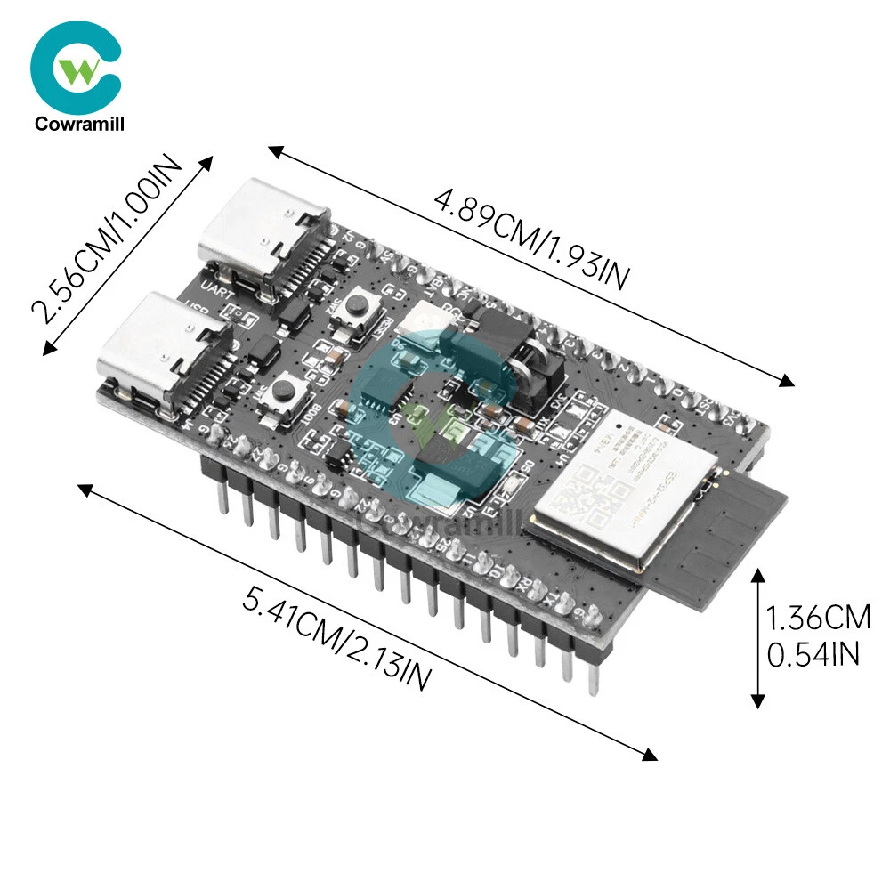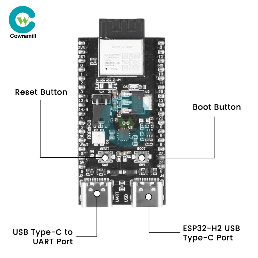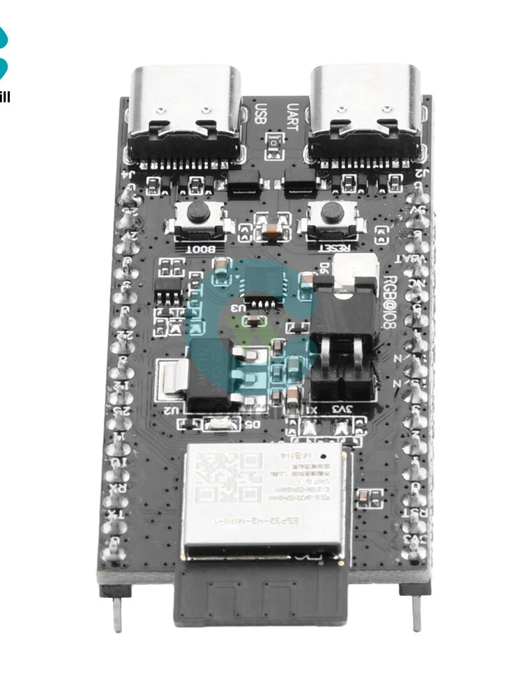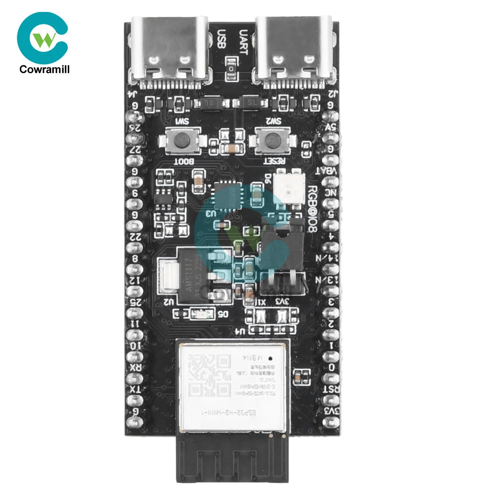Details Features 1.ESP32-H2-DevKitM-1 is an entry-level development board, equipped with low-power Bluetooth R and IEEE 802.15.4 dual-mode module ESP32-H2-MINI-1. 2. Most of the pins of the module on the board have been pinned out to the two sides of the development board, developers can easily connect a variety of peripheral devices through the jumper according to the actual needs of the developer, and can also be used to plug the board into the breadboard. 3.ESP32-H2-MIN1-1 equipped with ESP32-H2 chip, supports a variety of protocols, suitable for a variety of low-power IoT application scenarios. 4. With power indicator, when the board is connected to the USB power supply, the indicator will light up. 5. Support three power supply modes, more convenient to use. Specification ESP32-H2-MINI-1: ESP32-H2-MIN1-1 equipped with ESP32-H2 chip, integrated 2.4 GHz receiver compatible with low-power Bluetooth and IEEE 802.15.4 technology, support Bluetooth 5 (LE), Bluetooth mesh, Zigbee, Thread and Matter and other The protocols are suitable for a wide range of low-power IoT applications. Pinout: All available GPIO pins (except SPI bus of fash) have been pinned out to the pinout of the development board. 3.3V Power Indicator: This indicator lights up when the development board is connected to USB power. 5V to 3.3V LDO: Power converter with 5V input and 3.3V output. USB to UART Bridge: Single chip USB to UART bridge that provides up to 3Mbps transfer rate. ESP32-H2 USB Type-C Interface: USB Type-C interface for the ESP32-H2 chip, supports USB 2.0 full-speed mode with a data transfer rate of up to 12Mbps (note that this interface does not support 480 Mbps high-speed transfer mode). Boot key: Download key, press the Reset key while holding down the Boot key to enter the "Firmware Download" mode and download the firmware through the serial port. Reset key: Reset key. USB Type-C to UART Interface: Can be used as the power supply interface of the development board, and also can be used as the communication interface to communicate with the ESP32-H2 chip through the on-board USB to UART bridge. RGB LED: Addressable RGB light-emitting diode, driven by GPIO8. J5: Used to measure current, see chapter, Measuring Current, for details. You can choose any one of the following three power supply methods to power the development board. 1. USB Type-C to UART interface power supply (default) 2.5V and G (GND) pin power supply 3.3V3 and G (GND) pin power supply List 1 x Development Board Shipping Payment Return Policy Shipping 1.We only ship to the confirmed address provided by eBay. please make sure your ebay address is 100% matches the address you would like us to ship to. If not, please let us know before we sent you the package, or we will not be responsible for any loss. hope you could understand. 2.Orders will be processed instantly and dispatched within 1-2 business days except hoilday, so we do NOT accept any email/message note after you place orders. 3.All package need to wait 30 days, Please take care it.Less than 30 days,we can't take a refund . Payment 1.We accept PayPal payment ONLY, and must be received within 5 days from the date of purchase. 2. It is easy and safe for you to pay by credit cards, debit cards, bank transfers and PayPal account balances. 3.Buyers are responsible for import duties,custom fees and taxes, if any, please check your country. Return Policy 1.We believe our items are so outstanding. We are convinced you will be happy with your Purchase. 2. If you do not satisfy with our items. Please simply return to us within 30 Days in original condition. Just pay for the returned postage. Then we can issue full refund or resend the item to you after the returned item arrived at our warehouse. 3. Please include your eBay ID and item number with any email requests. Store Categories Store Categories Industrial Electronics Computers/Tablets & Networking Home & Garden Phones & Accessories Other