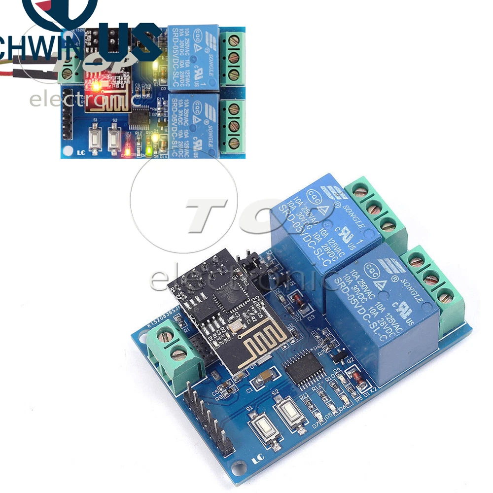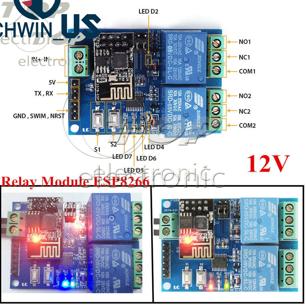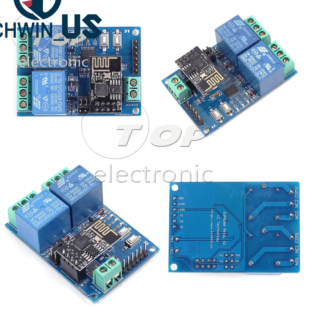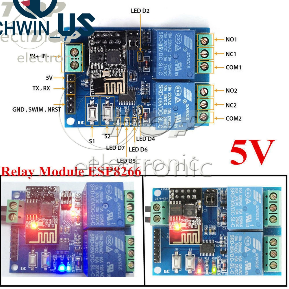 Store Categories Store Categories eBay Motor Fashion Books, Movies & Music Electronics Collectibles & Art Home & Garden Sporting Goods Toys & Hobbies Business & Industrial Health & Beauty Other Product View Detail 1. Description: The 5V dual WiFi relay module uses ESP-01 as the WiFi module and is compatible with 8 bit MCU chips. Only a simple configuration process can realize the wireless control of the 2 way relay by using the mobile phone APP in the lan. 2. Function: >. Onboard high performance microprocessor STM8S103 and ESP-01 WiFi modules. >. The module has 2 operating modes of work: Mode 1: mobile phone is directly mounted on WiFi module. Mode 2: mobile phones and WiFi modules are equipped on routers simultaneously Additional function: it can also be used as USB relay when ESP-01 is pulled out. >.Transmission distance: In an open environment, the maximum stable transmission distance is 100M when the mobile phone is mounted on the WiFi module. >. When the WiFi module and mobile phone are carried on the router at the same time, the transmission distance depends on the signal strength of the router. >. The use of Smartcongig technology in the mobile phone on the APP ESP-01 WiFi module to complete the account and password configuration, configured username and password memory function. >. Onboard 5V, 10A//250V AC 10A//30V DC relay, which can be continuously pulled for100 thousand times, has diode discharge protection, short response time. >. Board mode selection and real time working status indicator. >. Reserved UART debug interface and STM8 SWIM program download interface. >. Board size: 59*40mm. 3. Operating instructions: Prepare the following tools before use: 5V/1A power adapter and APP “ESP Touch--Demo” Step 1: the 5V/1A power adapter, the positive and negative poles of the power are connected to IN+ and IN- of the module respectively. Step 2: Android mobile terminal installation APP''Esp Touch--Dem ", for the first use of work mode 2 to ESP-01 module configuration WiFi account number and password. Step 3: Android mobile terminal to install APP "Easy TCP--20", TCP transmission tool, used to send relay control instructions. Click on "SWITCH", and then enter the 2 relay control instructions and names and contents (instruction form HEX) by the gray blocks in the interface. 4. Instructions for use of two operating modes and additional function: Operating mode 1 (mobile phone mounted on the ESP-01 module) instructions: >. Plug in the ESP-01 module, the module power up. About 4 seconds later, the green light changed from extinction to 2 seconds flashing. Description configuration completed. >. AP hotspot signal sent by mobile phone connected to ESP--01 module. >. Opens "EasyTCP--20" APP, and clicks "CONNECT"". After the connection is successful, the green light flashes slowly from 2 seconds to normal. Click on the gray box to send instructions to control the switch of the relay. Operating mode 2(mobile phones and WiFi modules are equipped on routers simultaneously) Feedback Payment Shipment About us Feedback We appreciate positive feedback . we always try our best to service our customers . so if you have ant question ,PLEASE DON’T HESITATE TO TELL US, we are always here to offer help . Payment We prefer PayPal .For purchasing multiple items , please contact us for a combined invoice . generally we would like to receive payment thin 48 hours if . Shipment We provide airmail service with good package . The items will be shipped within the nest 2 business days after we received the payment . when you buy multiple items ,your shipping cost will be combined with discount . SHIPPING TIME (weekends/holidays excluded) Country Name Shipping Time Country Name Shipping Time USA/Canada 10 -15d Spanish/Portugue 10-25d East/South Asia 10 -15d France/West Asia 10-25d United Kingdom 10 -20d Italy 10-30d Australia/New Zealand 10 -15d West Asia/Middle East 15-25d Most Country of West/North Europe 10-20d South America and Africa 15-30d East /Middle Europe/Russia 10-25d About us NEW, GOOD QUALITY, ORIGINAL PACKAGE LARGE STORE AND THE LOWEST PRICE NO-QUESTION-REFUND, FOR LARGE QUANTITY ,OFFER BETTER PRICE, ORIGINAL PACKING(TAPE REEL/TUBE/TRAY) We specialize in electronic components . ICs, Capacitors, Diodes, Resistors, LEDs, Transistors, and so on. Especially in Hard To Find Parts . we only sell NEW , ORIGINAL parts . please buy with confidence .We offer NO-QUESTION-REFUND go to my store