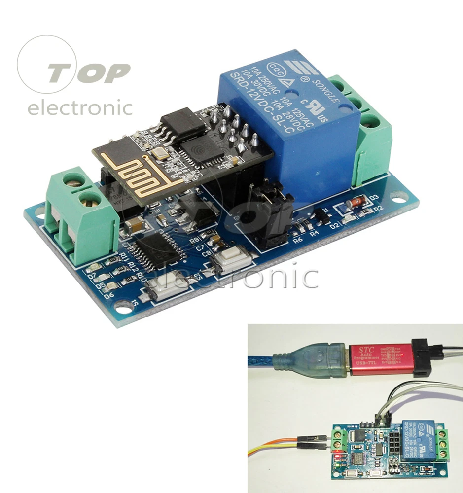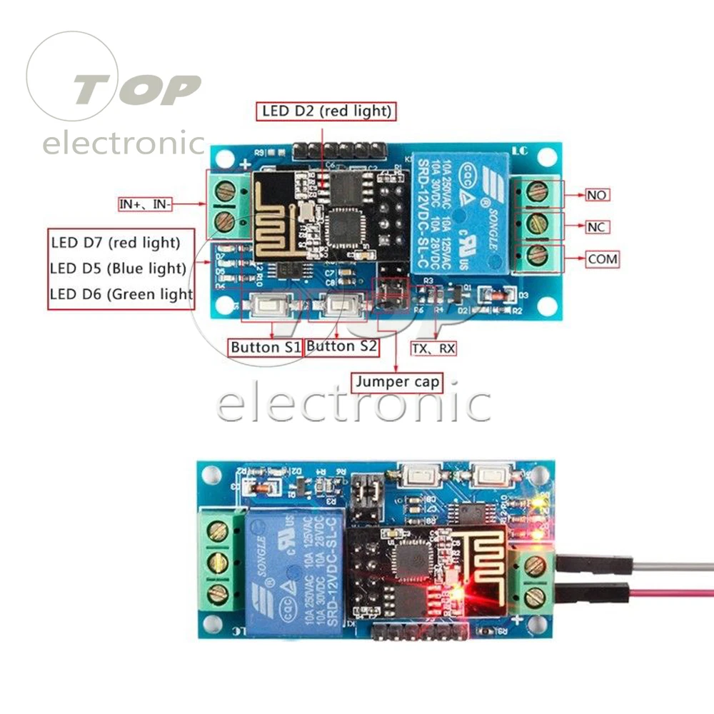 Store Categories Store Categories eBay Motor Fashion Books, Movies & Music Electronics Collectibles & Art Home & Garden Sporting Goods Toys & Hobbies Business & Industrial Health & Beauty Other Product View Detail 1. Description: The 12V ESP8266 two way WIFI relay module is based on ESP-01 as the WIFI module, with 8 bit MCU chip, and realizes the wireless control of the relay in the local area network by mobile APP through a simple configuration process. 2. Function and features: 1>. On-board high performance microprocessor STM8S103 and ESP-01 WIFI module 2>. The module has 2 modes of work Mode 1: the mobile phone is applied directly on the WIFI module Mode 2: the mobile phone and the WIFI module are applied to the router at the same time. Additional function: it can also be used as a USB relay when the ESP-01 is pulled out. 3>.Transmission distance: In an open environment, the maximum stable transmission distance is 100M when the mobile phone is mounted on the WiFi module. 4>. When the WiFi module and mobile phone are carried on the router at the same time, the transmission distance depends on the signal strength of the router. 5>. The use of Smartcongig technology in the mobile phone on the APP ESP-01 WiFi module to complete the account and password configuration, configured username and password memory function. 6>. On-board 12V, 10A/250V AC 10A/30V DC relay, which can be continuously pulled for 100 thousand times, has diode discharge protection, short response time. 7>. On-board mode selection and real time working status indicator. 8>. Reserved UART debug interface and STM8 SWIM program download interface. 9>. Board size: 57.4*29mm. 3. Operating instructions: Prepare the following tools before use: 12V/1A power adapter and APP “ESP Touch--Demo” Step 1: the 12V/1A power adapter, the positive and negative poles of the power are connected to IN+ and IN- of the module respectively. Step 2: Android mobile terminal installation APP''Esp Touch--Dem ", for the first use of work mode 2 to ESP-01 module configuration WiFi account number and password. Step 3: Android mobile terminal to install APP "Easy TCP--20", TCP transmission tool, used to send relay control instructions. Click on "SWITCH", and then enter the relay control instructions and names and contents (instruction form HEX) by the gray blocks in the interface. 4. Instructions for use of two operating modes and additional function: Operating mode 1 (the mobile phone is applied directly on the WIFI module) instructions: 1>. Plug in the ESP-01 module, the module power up. About 4 seconds later, the green light changed from extinction to 2 seconds flashing. Description configuration completed. 2>. AP hot spot signal sent by mobile phone connected to ESP--01 module. 3>. Opens "EasyTCP--20" APP, and clicks "CONNECT"". After the connection is successful, the green light flashes slowly from 2 seconds to normal. Click on the gray box to send instructions to control the switch of the relay. Operating mode 2(the mobile phone and the WIFI module are applied to the router at the same time.) instructions: 1>. Plug in the ESP--01 module, the module power, the light green light into slow flash, then press the S1 button to switch to the mode 2. Blue light, about 1 minutes later into 0.5S flash, indicating waiting for "Esp Touch--Demo" "APP" for its configuration WiFi account and password. 2>. At this time, the phone line connected to the router. Open "Esp Touch- Demo" "APP", enter the router password, click "Confirm". 3>. Waits for configuration to succeed, when the APP interface appears ESP-01 IP (such as 192.168.0.189) address, indicating that the ESP--01 module successfully connected to the router, and automatically remember the account number and password. The next entry mode 2 will automatically connect (about 20-60S to connect). It's important to note that the 192.168.0.189 IP address is dynamically assigned to the ESP-01 module by the router. The address may change after the next re-connection. You can see the real time IP address of the ESP-01 module in the router's device list. 4>. Opens "Easy TCP--20" APP, and clicks "CONNECT". When the connection is successful, the green light flashes from 2 seconds to normal. Click on the gray box to send instructions to control the switch of the relay. Additional functions (as USB relay) instructions: Prepare a USB to TTL serial module. The GND, TX, and RX of the TTL module are connected to the GND, TX, and RX of the relay module respectively. Pull out the ESP-01 module, select mode 1, and turn the green light into 2S slow flash and open the serial debug software on the computer (such as SSCOM32), and choose the baud rate of 115200. Sending A0 0101 A2 in the form of sixteen (HEX) can open the relay; send the A0 0100 A1 in the form of sixteen (HEX) to close the relay. Take the relay as an example: 5. Warm tips: 1>. For the first time using the configuration WIFI password time would be a little bit longer (about 1 minutes). After the completion of the next boot up configuration requires only 20 seconds can be automatically connected. 2>. If you want to replace the router, power outages can restart or press the S2 button (press the S2 key will remove the previous memory WIFI account and password). Under Mode 2 to configure ESP--01 WiFi account and password. 3>. The router signal when the ESP--01 memory is weak or does not lead to connection interruption in the service area, the green light will be extinguished and try to connect automatically. The key in this process to the invalid state. When the green light for 2 seconds and slowly restore the connection that has flashing. 4>. Mode 1 and mode 2 only when the green light for 2 seconds and slowly flashing or steady button can be used for the rest of the chip, self configuration or wait for the configuration process. The key is invalid. 5>. ESP--01 and ESP--01 have no timeout mechanism, mobile phone data from more than 6 minutes will automatically disco