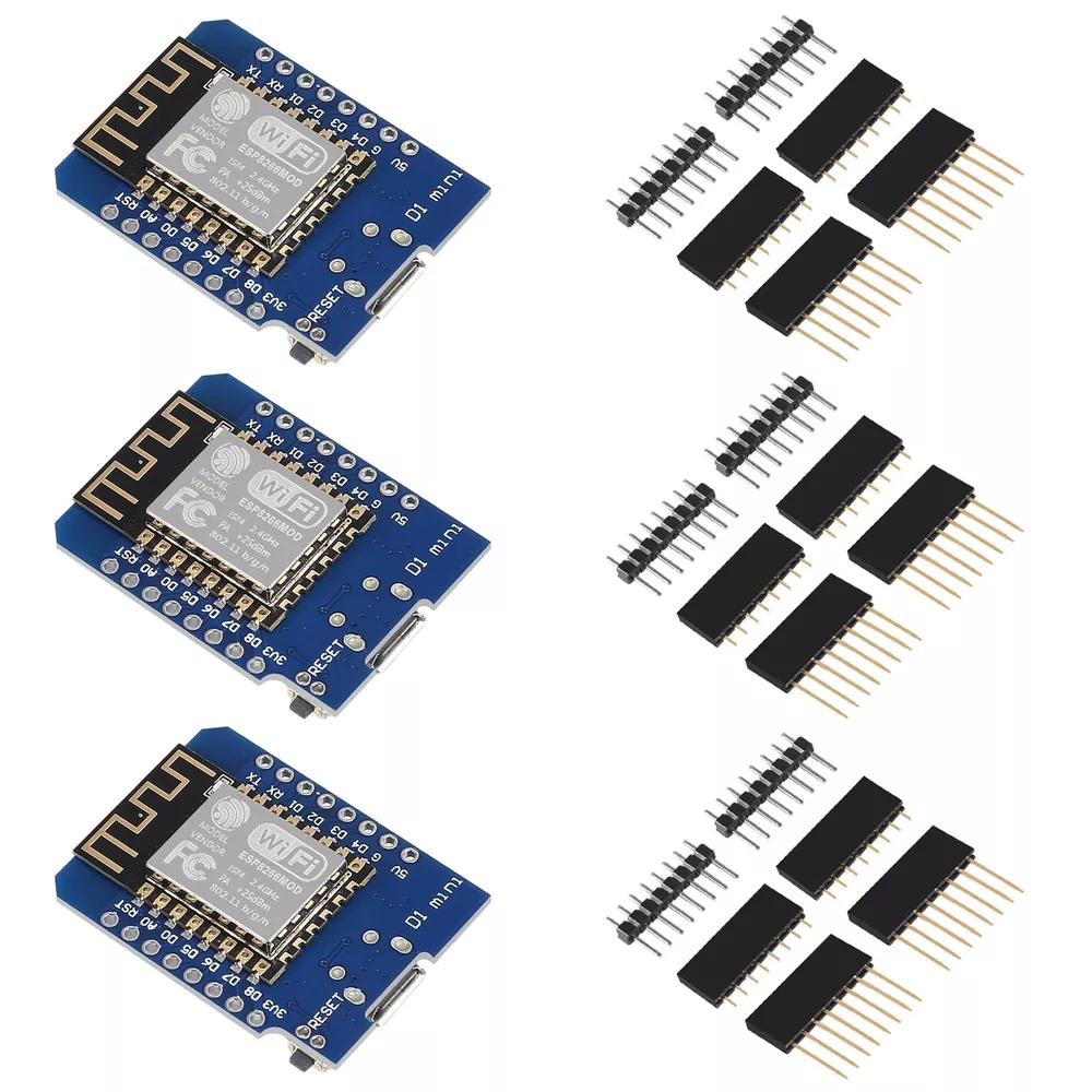 A mini wifi board with 4MB flash based on ESP8266EX Product Specification: Support OTA on line. 1 Micro USB connection. Main Chip: ESP8266 CH340G. 1 analog input (3.2V max input). 11 digital input/output pins, all pins have interrupt/pwm/I2C/-wire supported(except D0). With regulator onboard, can 3.3V pin, 5V pin, and 5V Micro USB port power input, The board operating voltage is 3.3V, connect the 5V supply is also converted to 3.3V, and not advised to use more than a 5V power supply. How to get it started for Arduino: - Setup driver Before you use the Development Board, you need to set up a CH340g driver. - Python On Windows, you need to install Python 2.7.10. On Linux, MAC OSX, you don't need to install it, comes preinstalled with OS. - Installing Hardware package "Boards Manager or GIT". We recommend using GIT, you can always get the latest version. Package Includes: 3*2 Pcs x Normal pins 3*2 Pcs x Long female pins 3*2 Pcs x Short female pins 3*1 Pcs x Esp8266 D1 mini wifi board The esp8266 WIFI development board with 4 MB of flash memory This is D1 mini module based on ESP8266EX, mini and compact design, can fit on a solderless breadboard, saves space for your project The esp8266 D1 mini development board is with Arduino, MicroPython, and Nodemcu, just like for Wemos D1 mini clones. can be programmed with for the Arduino IDE This esp8266 board has 11 digital input/output pins, all pins have interrupt/PWM/I2C/-wire supported(except D0), and a Micro USB connection. 1 analog input (3.2V max input) The esp8266 board with regulator onboard, can 5V pin or 5V Micro USB port power input, if 3.3V supply, can use 3.3V pin connect. The board operating voltage is 3.3V, connect the 5V supply is also internally converted to 3.3V, and not advised to use more than a 5V power supply
