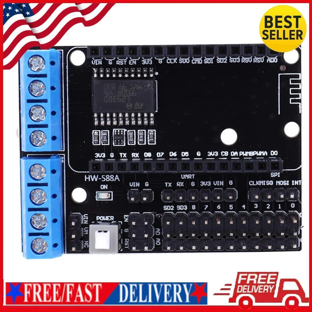 advanced-mall Add to my favorite sellers Mon. to Sat. Customer Service Warranty Service Product Description ESP8266 Lua Module Development Board WiFi L293D Motor Shield Driver Board ESP-12E Serial Port H-Bridge for IoT Smart Car Remote Features: 1.Motor Driving Powerhouse: This motor driver expansion board combines the power of the ESP12 DEV KIT development board with the L293D dual motor driver, allowing you to directly control and drive two motors with ease. 2.Safety: With a wide motor power supply range of 4.5V to 36V and separate control power supply range of 4.5V to 9V, this lua module development board ensures safe and reliable operation for your motor control needs. The onboard power switch provides convenient control over the power supply. 3.Separate Power Supplies: The motor power supply and control power supply of this motor drive shield board can be separated, giving you flexibility in powering your motors and control board. By using the included shorting jumper, you can easily combine the power supplies for simultaneous motor driving and control. 4.Powerful Functionality: With the dual high-power H-bridge drive provided by the L293D, this motor shield driver board offers strong and efficient motor control capabilities. The ESP12E Dev Kit control ports (D1, D3 for motor A; D2, D4 for motor B) enable seamless integration with your projects. 5.Compact Size: With dimensions of 58.00x43.00x13.00mm (2.28x1.69x0.51 inches), this motor shield expansion board is compact and space-saving, making it suitable for various IoT and robotics applications where size constraints may be a concern. Specification: Origin: Mainland China Type: Module Condition: New Model Number: Motor Drive Expansion Board Size: 58.00x43.00x13.00mm/2.28x1.69x0.51inch Power Input: ~ Motor Power Supply (Vm): 4.5v ~ 36v, Can Be Powered Separately ~ Control Power Supply (Vin): 4.5v To 9v (10vmax), Can Be Supplied Separately ~ Module Provides Short Circuits (Short Circuit Vm And Vin), You Can Easily Use One Way Power Supply (Must Be 4.5v ~ 9v) To Complete The Motor Drive And Control At The Same Time Logic Operating Current Iss: ≤60ma (Vi=L), ≤22ma (Vi=H) Driving Part Of The Operating Current Io: ≤ 1.2a Maximum Power Dissipation: 4w (T=90℃) Control Signal Input Level: High Level: 2.3v≤Vih≤Vin; Low Level: -0.3v≤Vil≤1.5v Operating Temperature: -25℃~+125℃ Driving Form: Dual High Power H-Bridge Drive Esp12e Dev Kit Control Port: D1, D3 (A Motor); D2, D4 (B Motor) Module Weight: 20g ESP12 DEV KIT development board expansion module Extend all the function pins of ESP12 DEV KIT: SPI, UART, GPIO, AI and 3.3V power interface. Extend two motor drivers, can directly drive two motors On-board power switch L293D: Motor power supply range: 4.5V~36V Control power supply range: 4.5V~9V Separate motor power supply and control power supply; in experiments, VIN and VM can be shorted by merging the short circuit blocks to supply power to the motor and control board at the same time Note: When inserting the ESP-12E module, please note that the antenna direction is the same as the direction of the expansion board. By utilizing the shorting module, power can be supplied to the control board and motor at the same time. Due to the different monitor and light effect, the actual color of the item might be slightly different from the color showed on the pictures. Thank you! Please allow 1-2cm measuring deviation due to manual measurement. Included 1*Motor Drive Expansion Board Payment Warranty Shipping Policies Contact Us * Payment must be received within 7 business days of auction closing. * If you have bought multiple items from me, you can send me one payment for all the items instead of paying for them individually. When you click the Pay Now button, eBay will automatically determine if there are other items you have won or purchased from me and will combine them for your review. * Refunds are normally issued with 2 working days.If you need any further information regarding payments,please contact us via eBay message. * If you have any special requests, please send us a message before making the payment. *NOTE: Import duties, taxes and chargers are not included in the item price or shipping charges. These charges are the buyer's responsibility. Please check with your country's customs office to determine what these additional costs will be prior to bidding buying. * 12 months Warranty. Buy with confidence! * If you are not satisfied when you receive your item, please return it within 14 days for a replacement or money back. Please contact me before you return it. * If item is defective in 3 months, We will send you a replacement without extra charger, or offer refund after we receive the defective item. * If item is defective after 3 months, you can still send it back to us. We will send you a new one after receiving the defective item. But you have to pay the extra shipping fee. * We ship from the item location. * Items will be shipped within 3 business day(S) after payment completed received. * NOTE: Please check the parcel before sign for it, If any problem with the parcel please mark on the signature that "Damaged when received" when signing it. Thank you. * We are not responsible for any custom duty or import tax. * We will leave POSITIVE FEEDBACK after receiving the payment. Please contact us if you are not satisfied with the item after receive it. * All messages will be answered within 1 business day. If you do not receive our reply, please kindly re-sent your message and we will reply to you as soon as possible. * Serious Buyer Only! Please place bid only if you agree with all the terms. * If you have any problems or concerns whatever with your order or products, please message us and give us a chance to assist you before you leave any feedback. We believe we can produce a positive outcome to any situation and will work hard to earn your praise. * If you were pleased with this transaction, Please give us 5 star rati