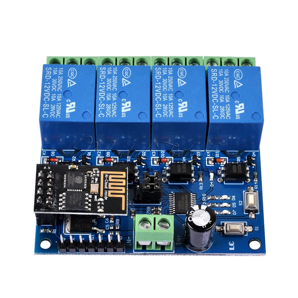 Keywords you may need: Sensors Modules Esp8266 Board R3&ATMEGA2560 NodeMCU Sheild Screw sheild Nano Sheild Relay Temperature Controller Displays OLED LED&RGB LCR Amplifier Power supply Step Up Step down Converter Switch GPS Light Wireless/Wifi Dear customer: Thank you for visit our store,we are proffessional "Business & Industrie" seller for 10 years,our main products included:Sensors,modules devolpment board, LED displays, other IC procuts an so on,any question about DIY robot,Arduino,or Raspberry Pi will be welcome to discuss with us,we will try our best to supply the most advanced product and price,(if we sale more,the cost of made one product will be reduce and we will change or price to make you save more. Hope you enjoying yourself here! We appreciate your business! Shipping Payment Refund Feedback Shipping We will arrange shipping for you within 24 Hours after payment cleared except the holidays. We only ship to the confirmed address provided by PayPal. Before you pay, please make sure your address in PayPal matches the address you would like us to ship to. If not, please let us know before we sent you the package, or we will not be responsible for any loss. hope you could understand. -We ship items to Worldwide. Thank you! -we will ship out the order in 1-2 business days after payment cleared .Since it is international shipping ,delivery time is about 15--28 business days to arrive to most countries. Payment We accept PayPal payment ONLY. Refund * We believe our items are so outstanding. We are convinced you will be happy with your Purchase. * If you do not satisfy with our items. Please simply return to us within 30 Days in original condition. Just pay for the returned postage. Then we can issue full refund to you after the returned item arrived at our warehouse. * Please include your eBay ID and item number with any email requests. Feedback * When you satisfied with our product and services please leave us positive feedback. * If you have got the package, please confirm " Delivery on time " For us. * If a problem occurs, contact us immediately with any email request. * Just contact us using the " Ask the seller a question" link on eBay. ESP8266 WiFi ESP-01 4-Channel Relay Module 12V For IOT Smart Home Mobile APP Description: The 5V dual WiFi relay module uses ESP-01 as the WiFi module and is compatible with 8 bit MCU chip. Just a simple configuration process that can achieve wireless 2-way relay control using the mobile phone APP. Function: 1. Onboard ESP-01 WiFi modules and high performance microprocessor STM8S103. 2 the module has 2 working modes: Mode 1: mobile phone is mounted directly on WiFi module. Mode 2: mobile phones and WiFi modules are equipped on routers simultaneously Additional function: it can also be used as a USB relay when ESP-01 is pulled out. 3. Transmission distance: In an open environment, the maximum stable transmission distance is 100 m when the mobile phone is mounted on the WiFi module. 4. When the WiFi module and mobile phone are held on the router at the same time, the transmission distance depends on the signal strength of the router. 5. on board 12 v, 10A / 250 v AC 10A // 30 v DC relay, which can be continuously pulled for 100 thousand times, has diode protection against discharges, short response time. 6. The use of Smartcongig technology in the mobile phone on APP ESP-01 WiFi module to complete the account and password configuration, memory function configured the user name and password. 7. Real-time mode selection tab and work status indicator. 8. reserved UART debugging interface and STM8 of NUOTATA download interface program. 9. the dimensions of the card: 59 * 40mm. Package Included: 1 x 12V ESP8266 ESP-01 4-Channel WiFi Relay Module Am 02.07.20 hat der Verkäufer die folgenden Angaben hinzugefügt: