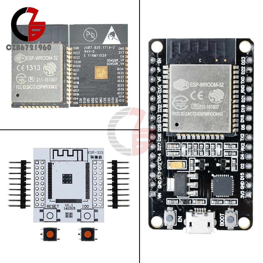 Home Electronic Component Chips Sensor Arduino Module Raspberry Pi ESP-WROOM-32 ESP32 ESP32S IOT WiFi WLAN BLE Bluetooth Module Adapter Board Popular Popular Product Introduction ESP-32/32S Module ESP-WROOM-32 is Powered by Espressif’s most advanced SoC, the ESP-WROOM-32 features high performance, a wide range of peripherals, Wi-Fi and Bluetooth radio, which provide a complete solution tailored to advanced IoT applications. 240 MHz dual core Tensilica LX6 microcontroller with 600 DMIPS Integrated 520 KB SRAM Integrated 802.11BGN HT40 Wi-Fi transceiver, baseband, stack and LWIP Integrated dual mode Bluetooth (classic and BLE) 8 MByte flash 2.2V to 3.6V operating voltage -40°C to +125°C operating temperature On-board PCB antenna / IPEX connector for external antenna Supports sniffer, station, softAP and Wi-Fi direct modes Max data rate of 150 Mbps@11n HT40, 72 Mbps@11n HT20, 54 Mbps@11g, and 11 Mbps@11b Maximum transmit power of 19.5 dBm@11b, 16.5 dBm@11g, 15.5 dBm@11n Minimum receiver sensitivity of -98 dBm 135 Mbps UDP sustained throughput 2.5 µA deep sleep current Wi-Fi Bluetooth 802.11 b/g/n/e/i Class-1, class-2 and class-3 transmitter without external power amplifier 802.11 n (2.4 GHz), up to 150 Mbps Enhanced power control 802.11 e: QoS for wireless multimedia technology +10 dBm transmitting power WMM-PS, UAPSD NZIF receiver with -98 dBm sensitivity A-MPDU and A-MSDU aggregation Adaptive Frequency Hopping (AFH) Block ACK Standard HCI based on SDIO/SPI/UART Fragmentation and defragmentation High speed UART HCI, up to 4 Mbps Automatic Beacon monitoring/scanning BT 4.2 controller and host stack 802.11 i security features: pre-authentication and TSN Service Discover Protocol (SDP) Wi-Fi Protected Access (WPA)/WPA2/WPA2-Enterprise/Wi-Fi Protected Setup (WPS) General Access Profile (GAP) Infrastructure BSS Station mode/SoftAP mode Security Manage Protocol (SMP) Wi-Fi Direct (P2P), P2P Discovery, P2P Group Owner mode and P2P Power Management Bluetooth Low Energy (BLE) UMA compliant and certified ATT/GATT Antenna diversity and selection HID Compliant with Bluetooth v4.2 BR/EDR and BLE specification All GATT-based profile supported SPP-Like GATT-based profile BLE Beacon A2DP/AVRCP/SPP, HSP/HFP, RFCOMM CVSD and SBC for audio codec Bluetooth Piconet and Scatternet ESP32 vs ESP8266: ESP32 ESP8266 Ethernet MAC interface Not available GPIOs for 10 touch sensors Not available Temperature sensor (on-chip) Not available Remote controller functionality Not available Hall sensor Not available Digital-to-Analog Converter (DAC) Not available CAN 2.0 Not available Analog-to-Digital Converter (ADC): 16 channels with 12-bit SAR-ADC with support for a Low-Noise Amplifier (LNA) 10-bit ADC, no LNA 2 I2C interfaces 1 I2C interface 16 channels for PWM 8 channels for PWM GPIOs (General Purpose Input / Output): 36 GPIOs: 17 4 SPI interfaces with Quad-SPI and maximum 80MHz 3 SPI interfaces with Quad-SPI and maximum 80MHz Pin assignment: Package included: 1 x ESP-32 ESP-32S ESP-WROOM-32 WLAN & BLE Module ESP-32/32S Adapter This is a adapter board for ESP-32S Wireless Module. It can be inserted to breadboard with Dupont cable wire. Convenient to develop and debug. RESET I/O Pins Pin Pitch: 2.54mm Package included: 1 x Adapter ESP-32/32S Module +Adapter Package included: 1 x ESP-32 ESP-32S ESP-WROOM-32 WLAN & BLE Module 1 x Adapter ESP-32 Dev Board (CP2102) ESP32 is already integrated antenna and RF balun, power amplifier, low-noise amplifiers, filters, and power management module. The entire solution takes up the least amount of printed circuit board area. This board is used with 2.4 GHz dual-mode Wi-Fi and Bluetooth chips by TSMC 40nm low power technology, power and RF properties best, which is safe, reliable, and scalable to a variety of applications. Features: High performance-price ratio Small volume, easily embeded to other products Strong function with support LWIP protocol, Freertos Supporting three modes: AP, STA, and AP+STA Supporting Lua program, easily to develop Package included: 1 x ESP32 Development Board Payment Shipping Refund Payment We accept PayPal only. But we only Accept your Ebay Address ,Please Make sure it's 100% right. Payment must be received in 5 business days of auction closing. Please leave note for your special request (e.g. Colors or Size) in PayPal when you pay the order. Any special request cannot be accepted after 24 hours of payment, because most of orders will be processed instantly and same day dispatched. Shipping We maintain high standards of excellence and strive for 100% customer satisfaction! Feedback is very important to us. We request that you contact us immediately BEFORE you give us neutral or negative feedback, so that we can satisfactorily address your concerns. Refund All package need to wait 30 days (US only n eed 7-10 days) , Please take care it.Less than 30 days,we can't take a refund . If the item is defect when you receive it or you are not satisfied with it, please return it within 14 days for a replacement or money back. But the items must be back in factory condition. Please contact us and double check the return address before you return it. If is item is defective in 12 months, you can return it to us. We will send you a new replacement after receiving the defective item.