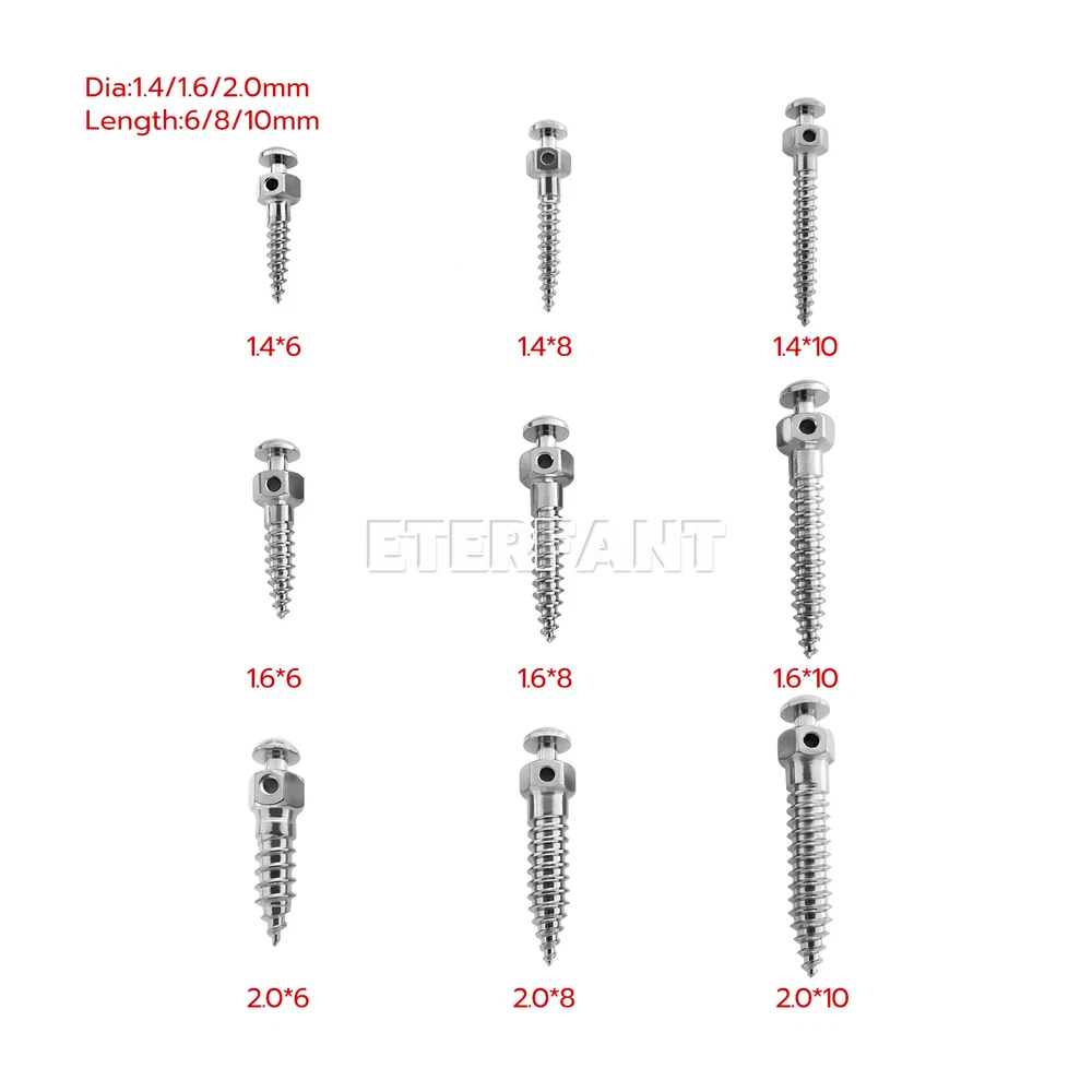 Product Name: Dental Orthodontic Micro Implant Screws Material: Titanium Alloy Specifications: 1.4*6mm+1.4*8mm+1.4*10mm=1 bag 1.6*6mm+1.6*8mm+1.6*10mm=1 bag 2.0*6mm+2.0*8mm+2.0*10mm=1 bag FDA Statement: The sale of this item may be subject to regulation by the U.S. Food and Drug Administration and state and local regulatory agencies. So you can bid it on this item only if you are an authorized purchaser. If the item is subject to FDA regulation,We have to verify your status as an authorized purchaser of this item before shipping of the item. Thanks for your understanding!