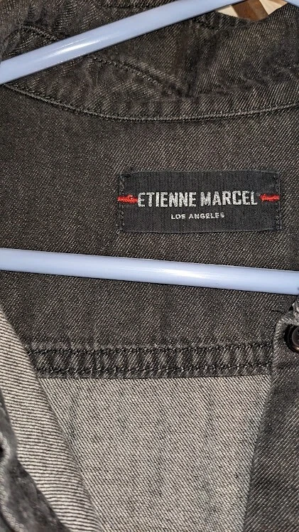 Lots of details on this jumpsuit--snap and tie at waist, button front, fringe detail, large front pockets. No size tag, but adjustable waist measures 35 in, pit to pit is 39.