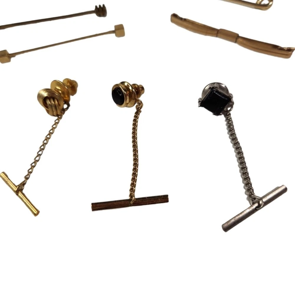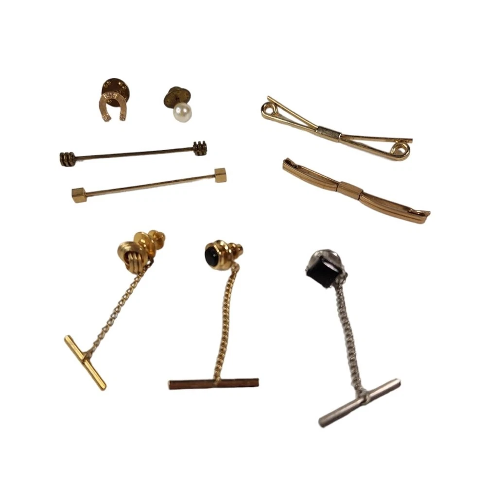 This lot contains 9 vintage tie accessories - tie bars, tie tacks, tie clips... They're all in good shape and a great addition to any dapper collection!