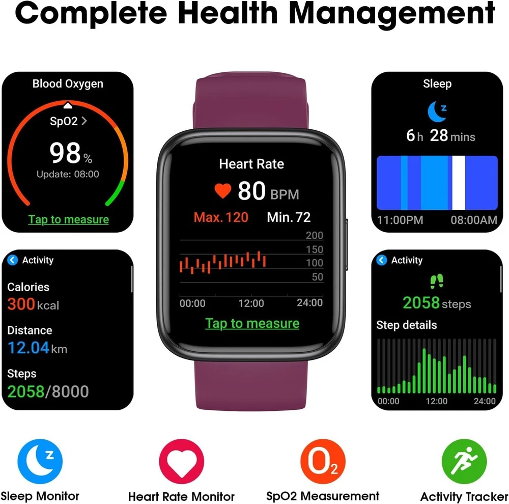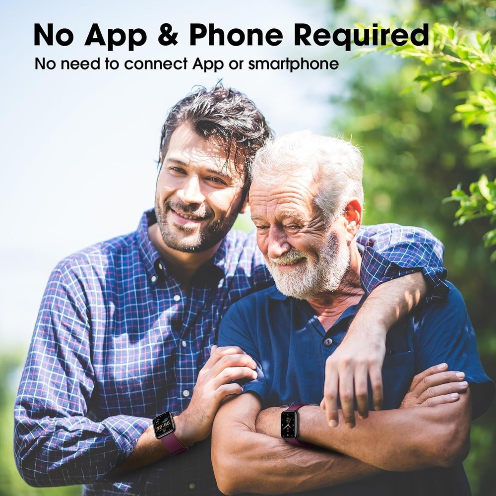 EURANS Smart Watch No App/Phone Required, 14 Days Battery Life Fitness Tracker W Description : 【No App/Phone Required Smart Watch】This smart watch works without any apps or linking to smartphones!; It's as easy to use as a regular watch but smarter; Perfect for those who want a simple fitness tracker without setting up with a smartphone 【Large, Easy-to-read Screen for User-Friendly Experience】Featuring an upgraded 1.8" ultra-clear AMOLED HD display with a resolution of 368*448; Enjoy a wider viewing range, lower power consumption, richer colors, and higher contrast 【14 Days Battery Life】With a high-capacity battery, this activity tracker lasts up to 14 days on a single charge and can stay in standby mode for up to 30 days; It takes only about 1.5 hours to fully charge; Perfect for business trips or travel 【Complete Health Management with Just This Smart Watch】This smartwatch can comprehensively measure your heart rate and blood oxygen levels; Additionally, it tracks your sleep patterns, including deep sleep, light sleep, and REM sleep 【Great Buddy for Your Workouts】This fitness tracker can accurately monitor and record your steps, calories, distance, and activity time anytime and anywhere; Giving you a clearer understanding of your workout data 【The Best Gift for Loved Ones and Friends】This smart watch is perfect for seniors and friends, meeting the needs of all age groups; It works independently of any app or phone pairing, making it usable in any situation